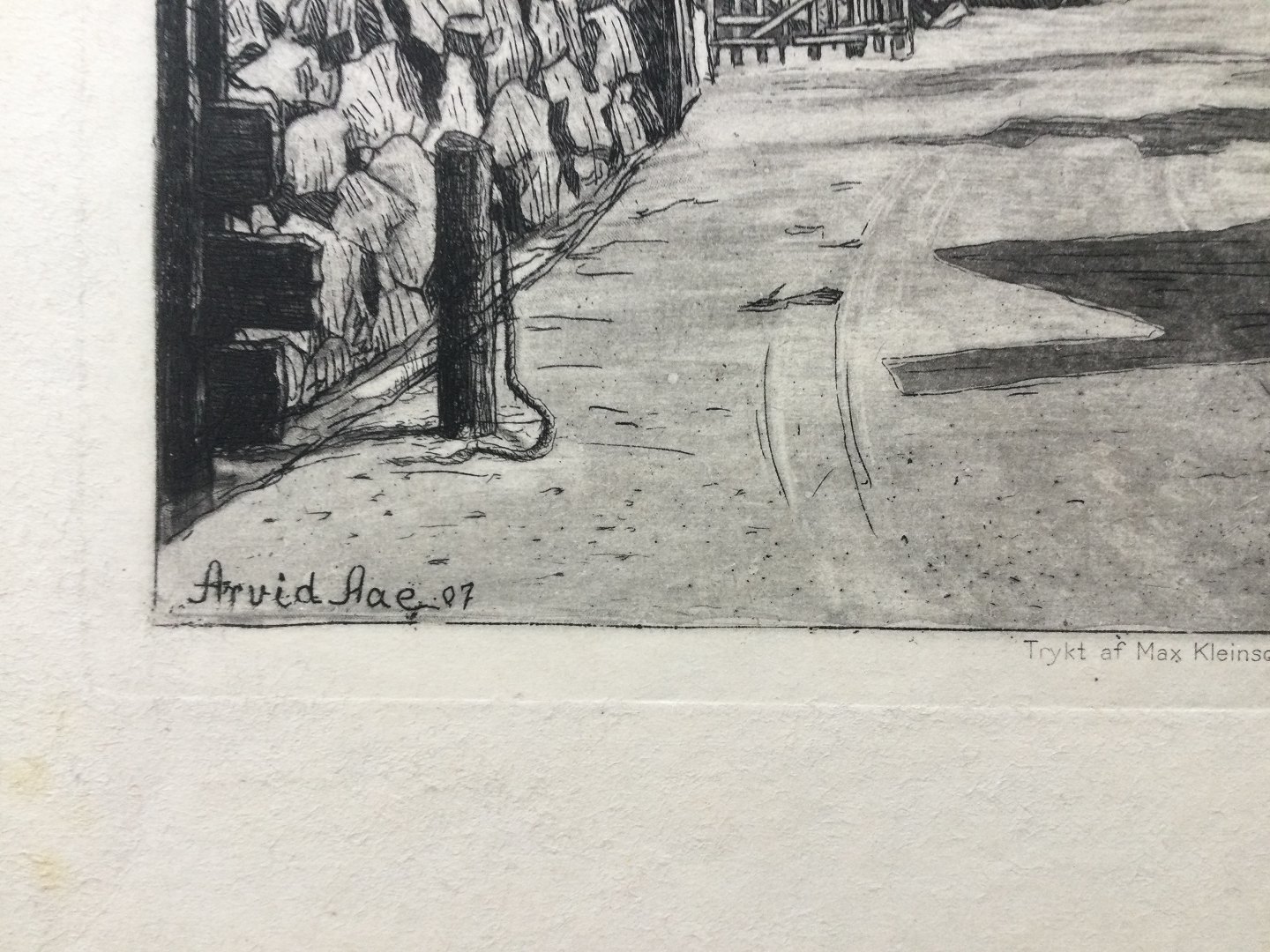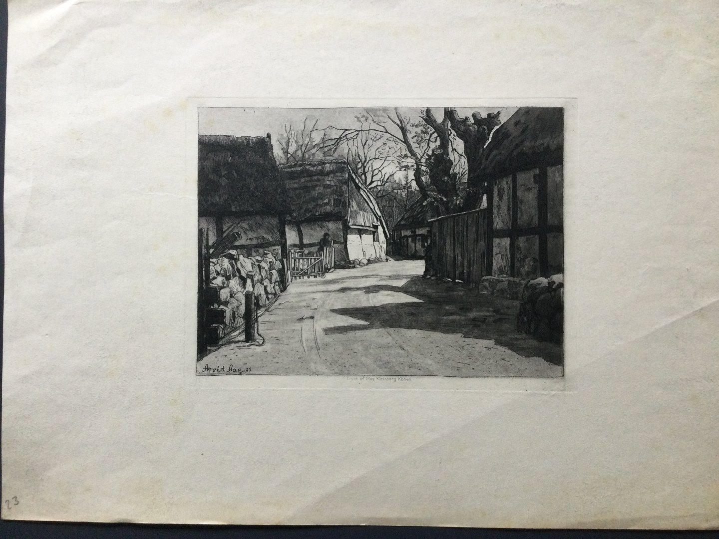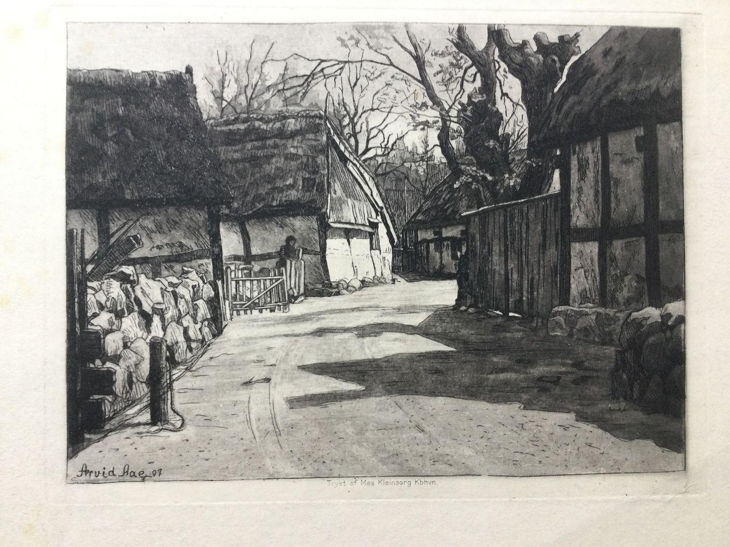 Text available in Danish: Radering af Arvid Aae - Landsbygade Bornholm 1907.