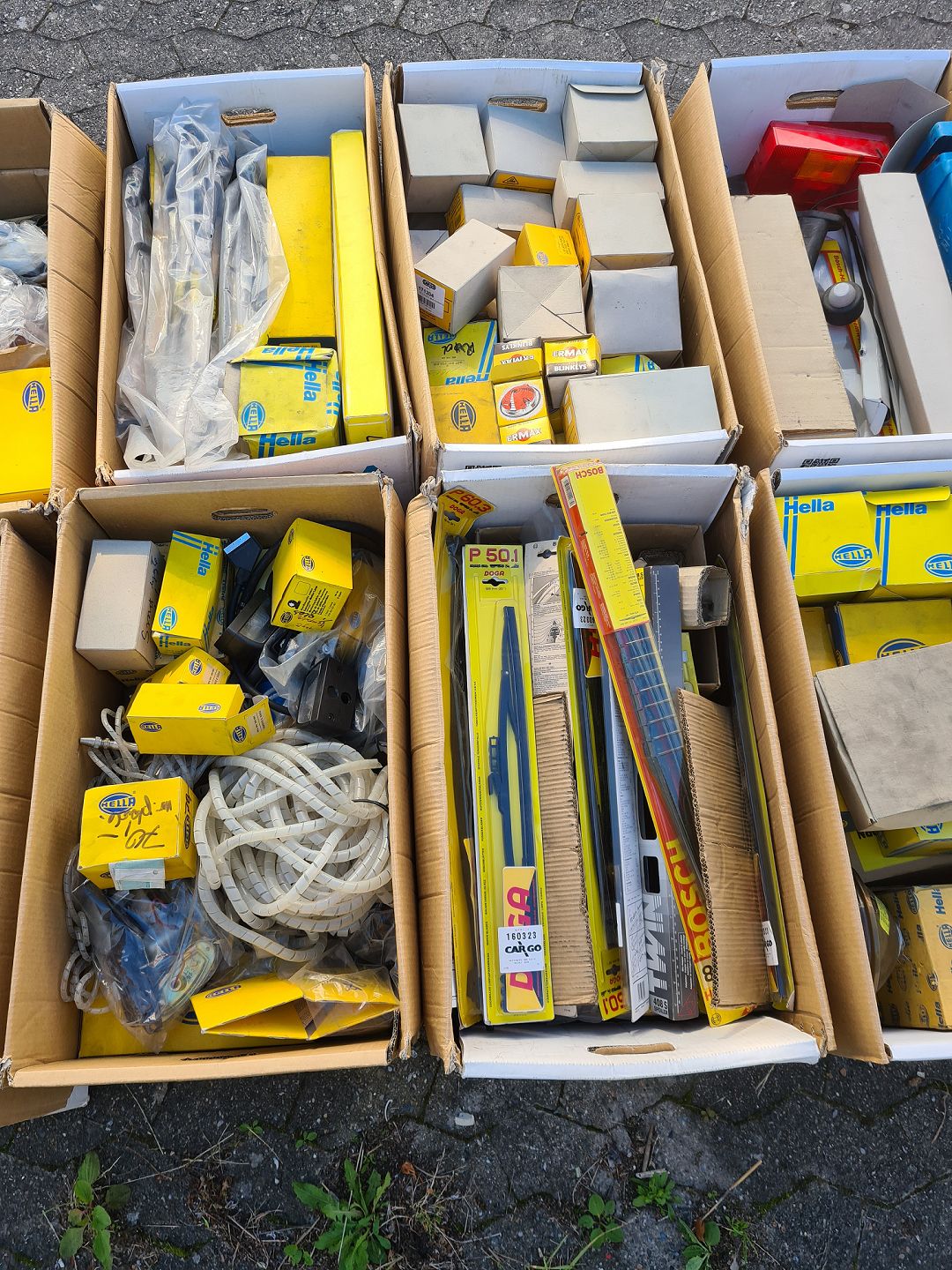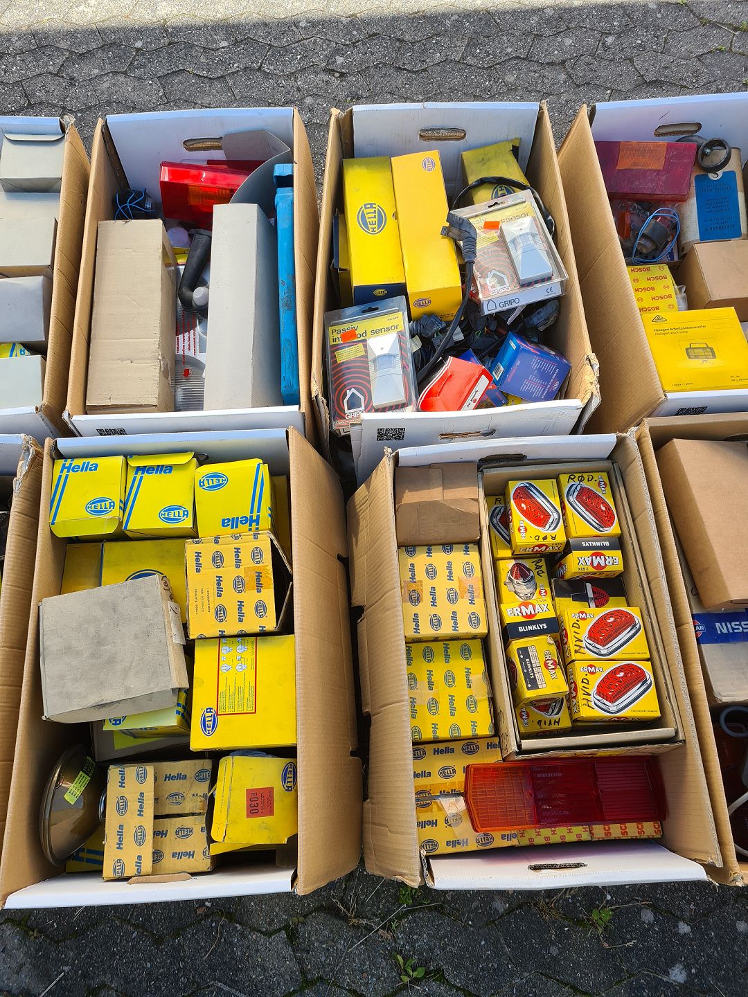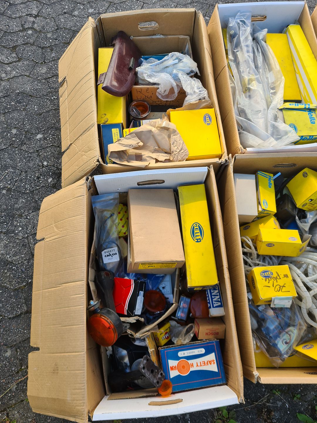 14 flyttekasser med div. auto-dele, fra 1960-2000erne.