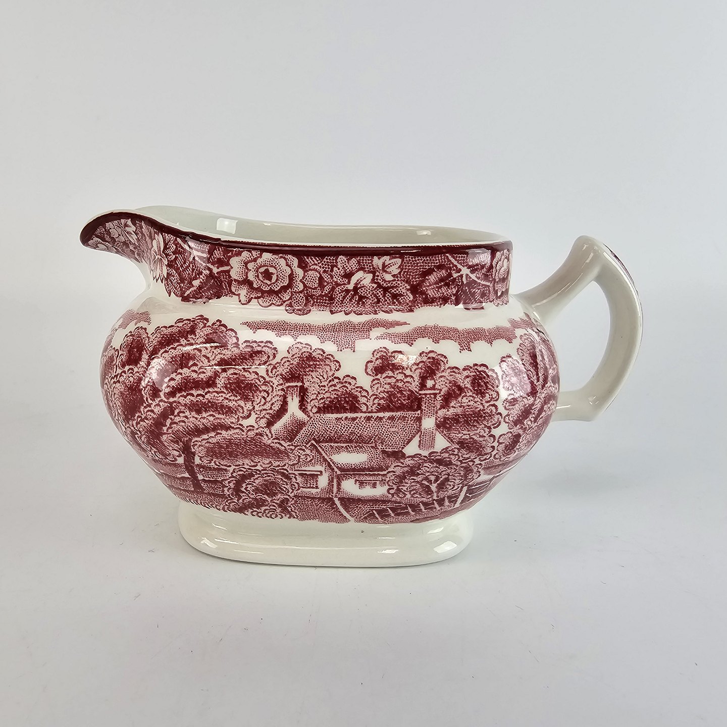 Kvadratisk flødekande fra det engelske stel Rød Paris (Enoch wood's, English scenery)