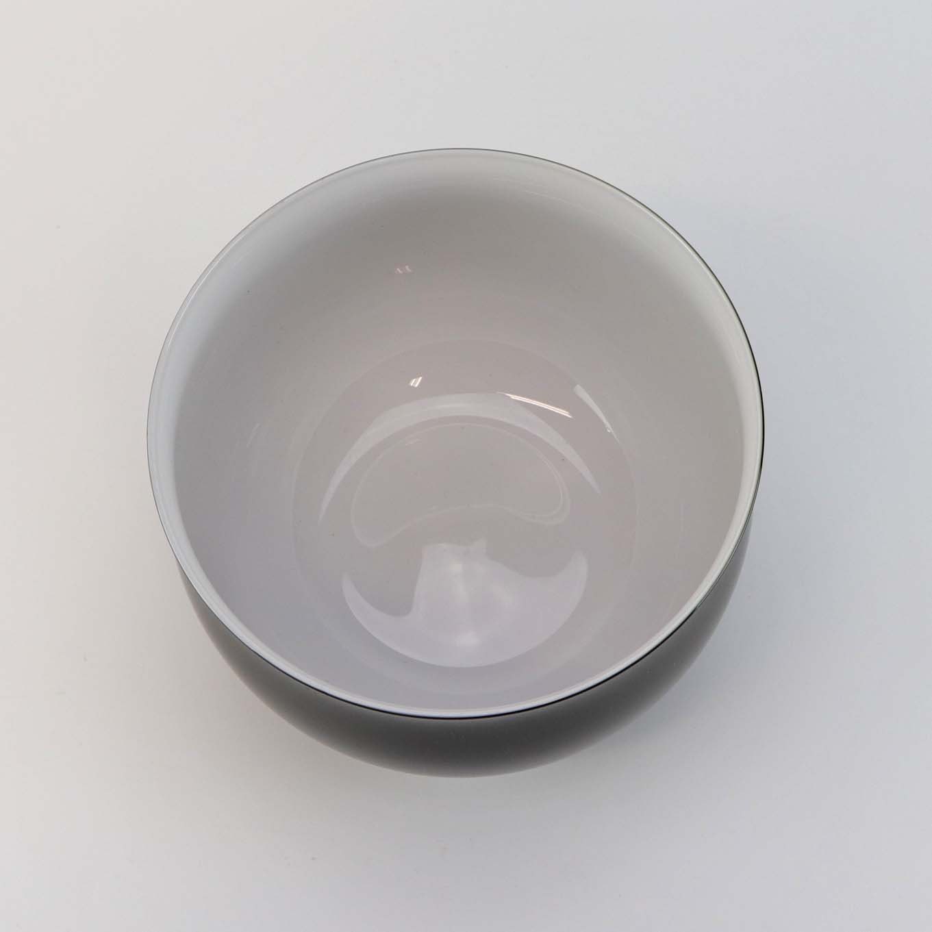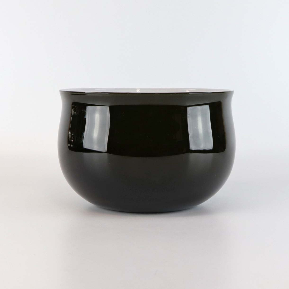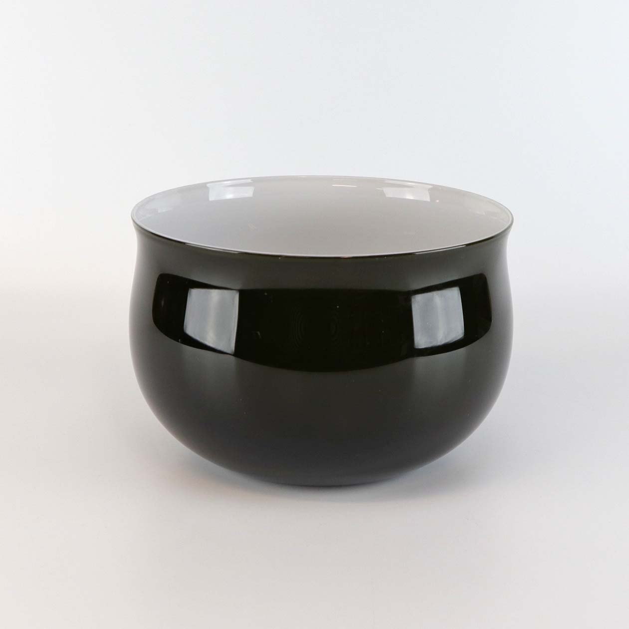 Skål i sortgrøn glas med opal hvid inderside fra serien Køkken & bord fra 1976