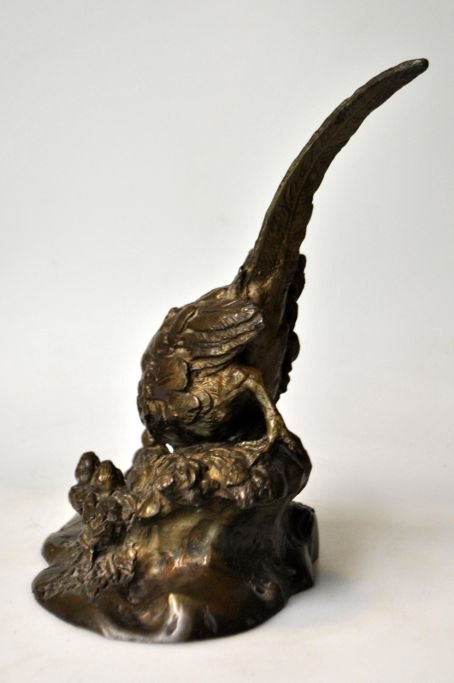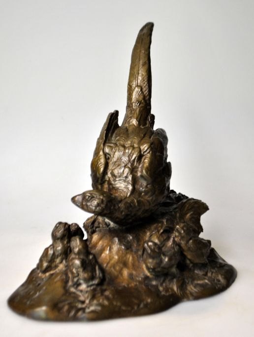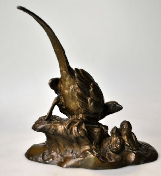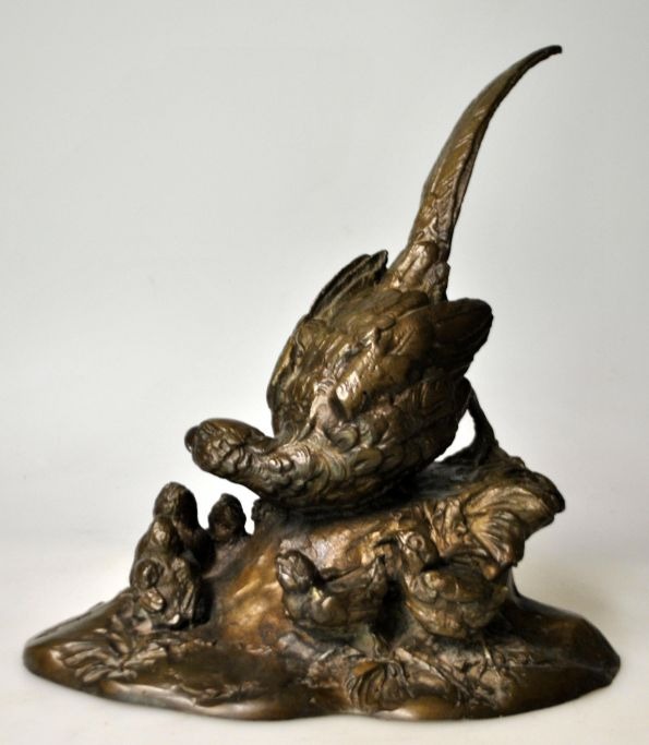 Ubekendt kunstner (20. årh.): Bronzefigur af fasan med kyllinger