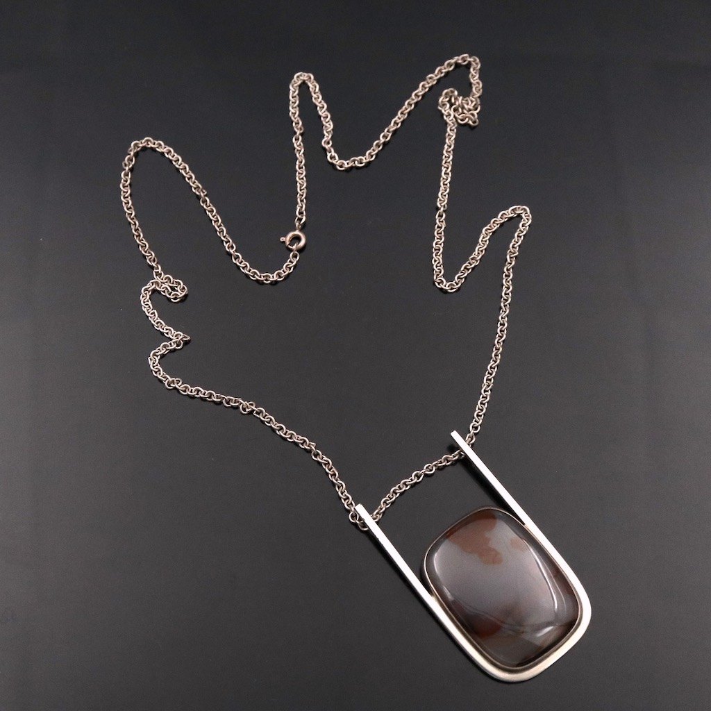 Boy Johansen. Halssmykke i sterlingsølv med agat.