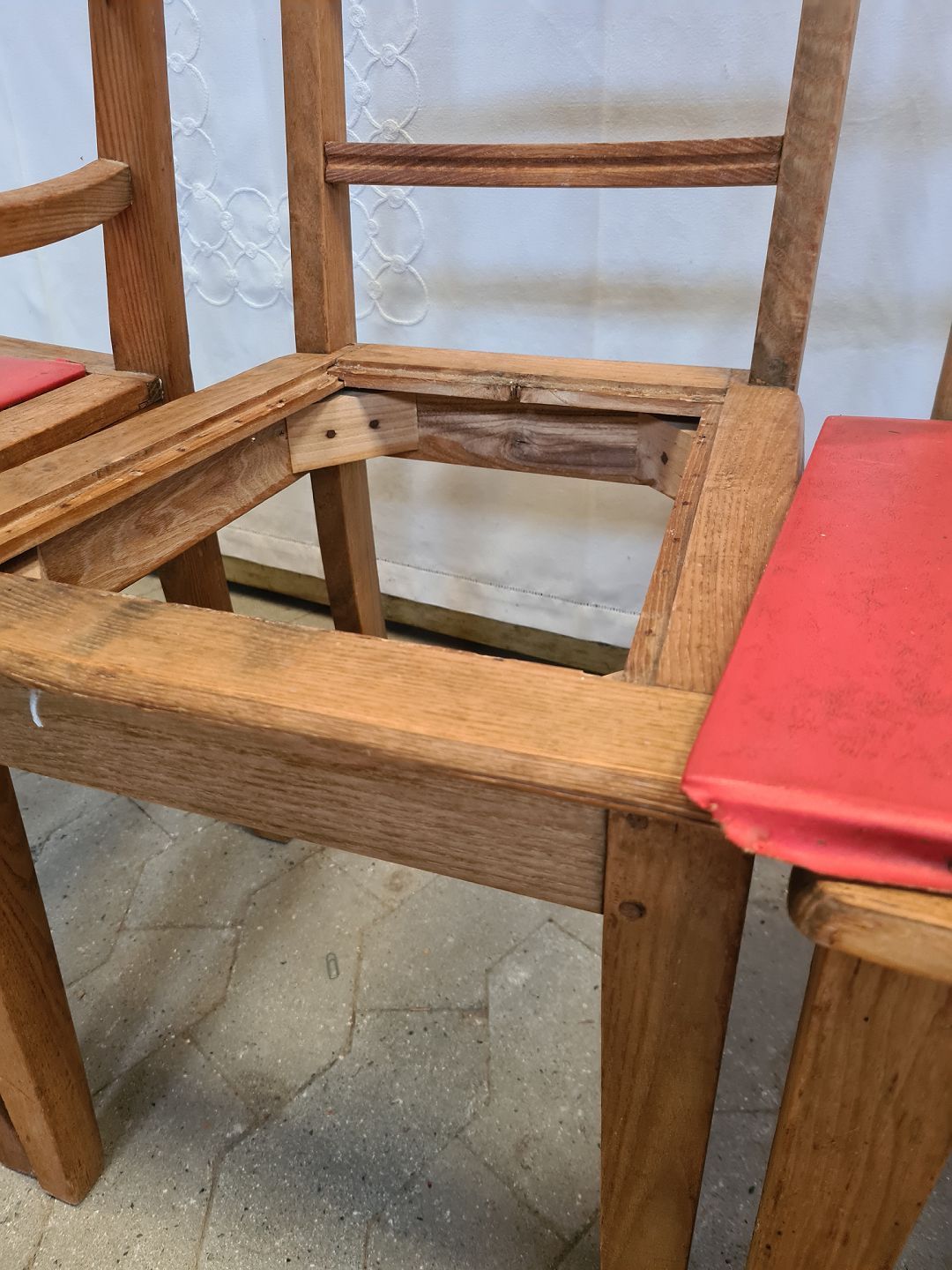 De har brugsspor og løse sæder i kunstlæder.