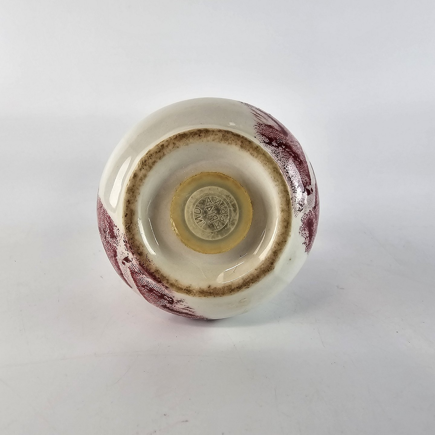 Rød Paris er af engelsk fajance dekoreret med forskellige landskaber og blomster i kanten, alt i forskellige røde nuancer