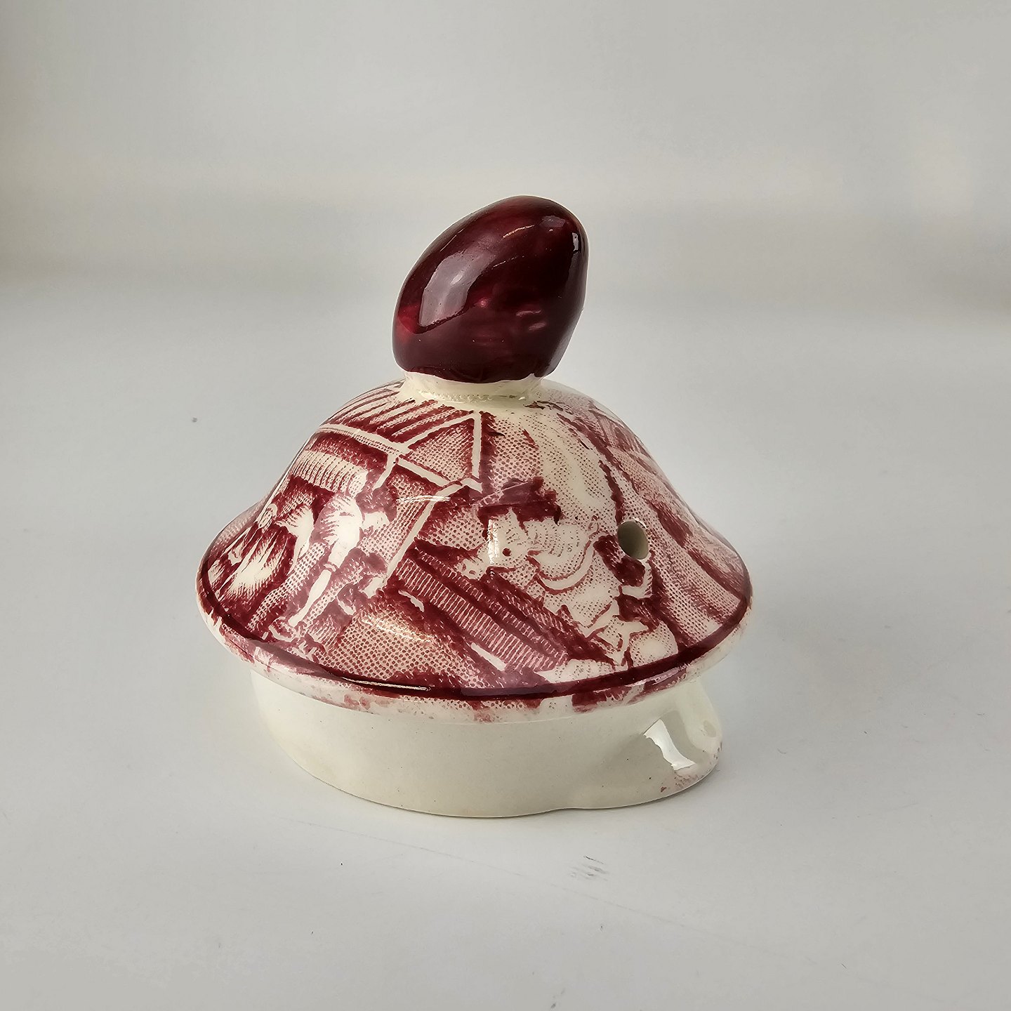 Rød Paris er af engelsk fajance dekoreret med forskellige landskaber og blomster i kanten, alt i forskellige røde nuancer