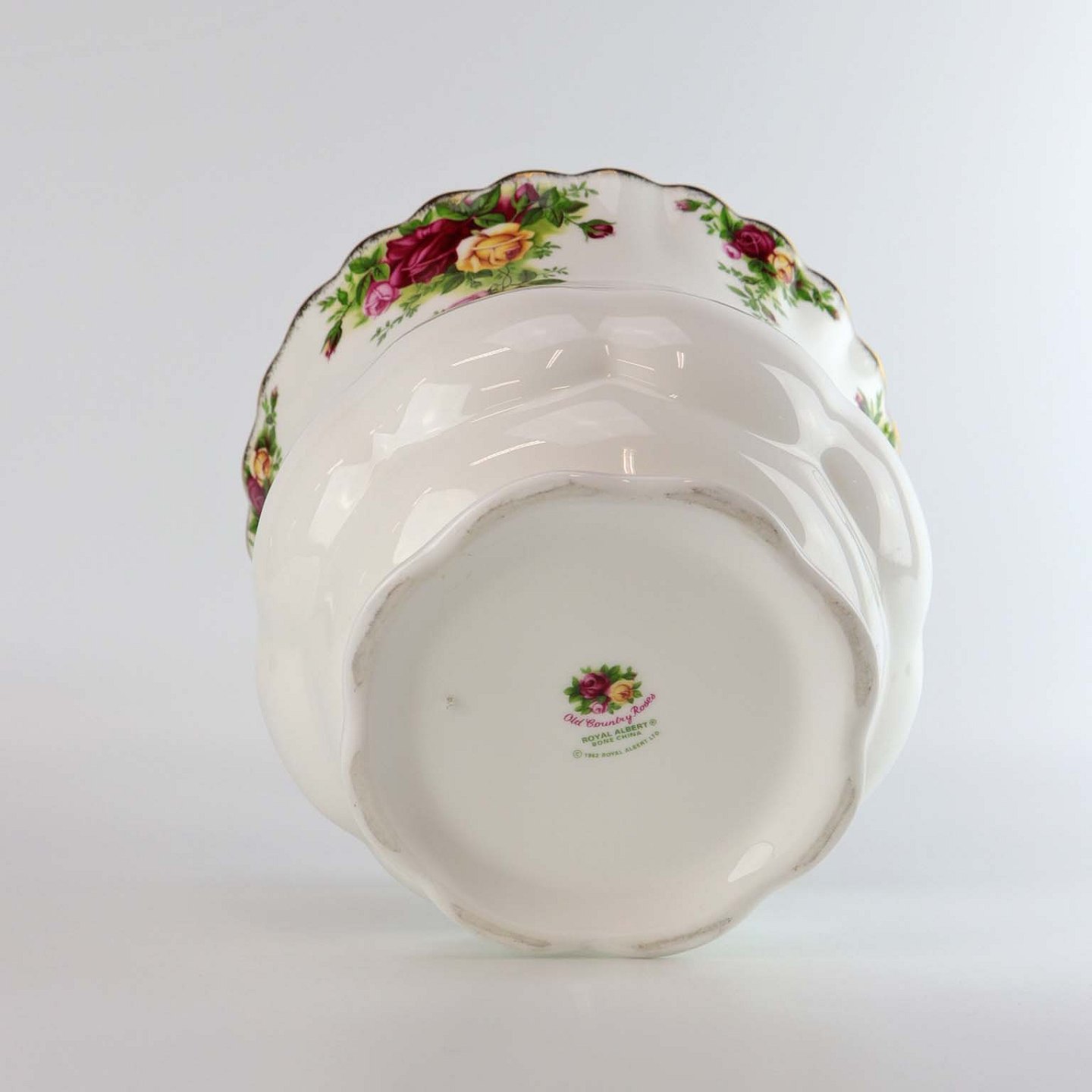 Urtepotteskjuler i porcelæn fra det engelske stel Old country roses. Landsbyrose