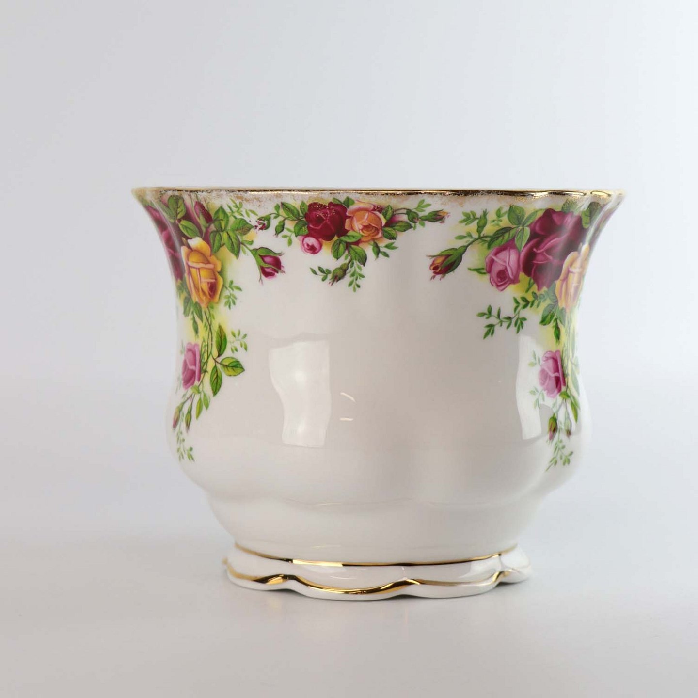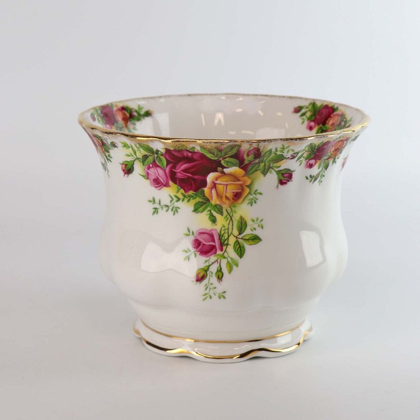 Urtepotteskjuler i porcelæn fra det engelske stel Old country roses. Landsby Rose