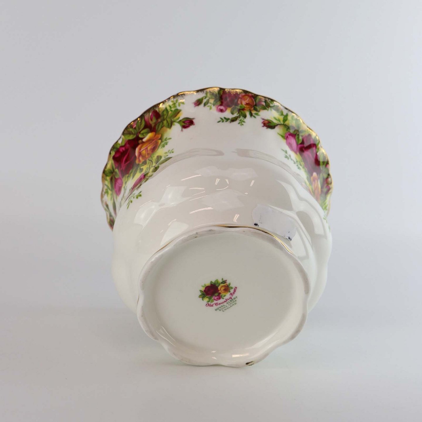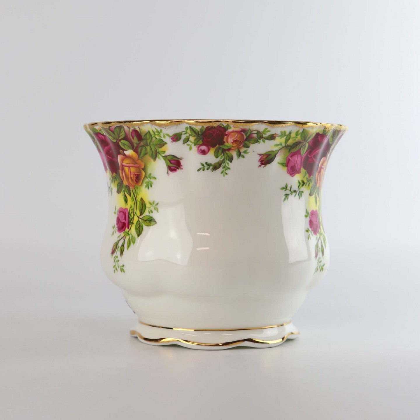 Urtepotteskjuler i porcelæn fra det engelske stel Old country roses. Landsbyrose.