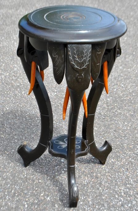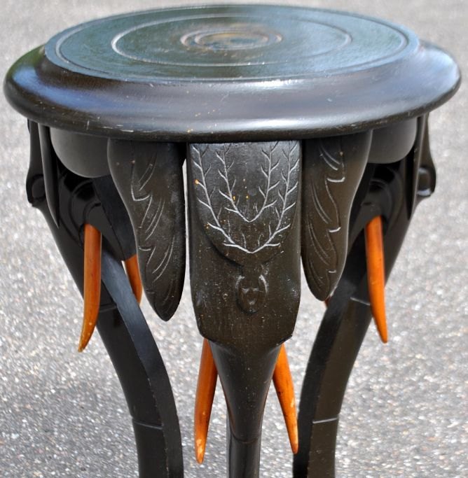 Elephant three-legged table, approx. 1900. Black painted wood.