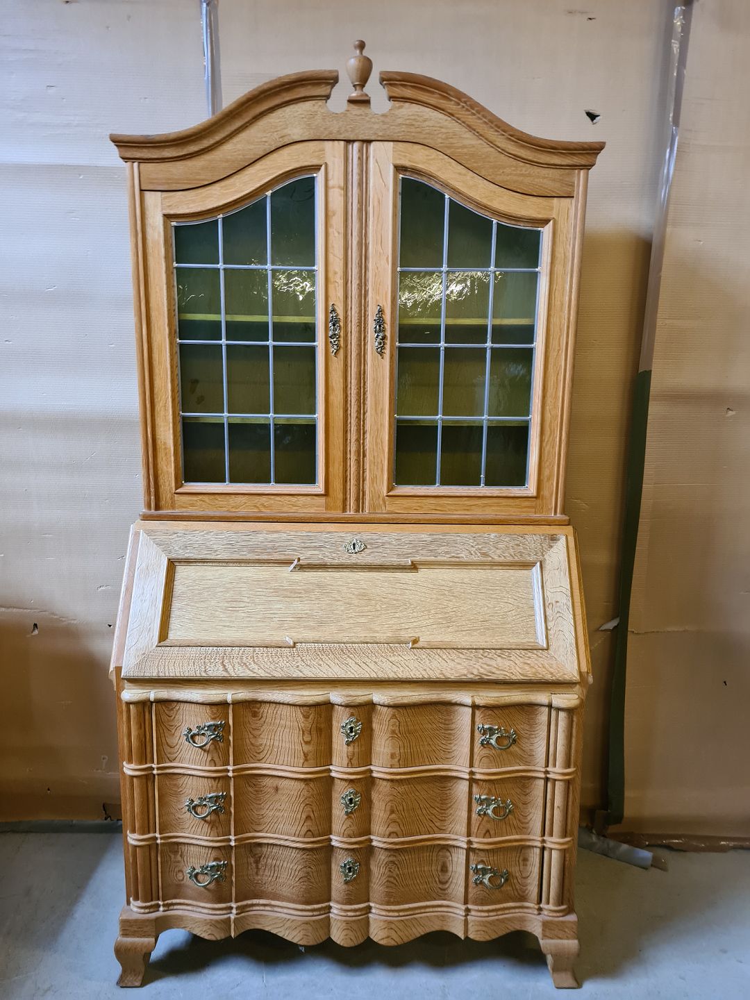 Chatol med overskab i fineret egetræ, fra 1980erne.