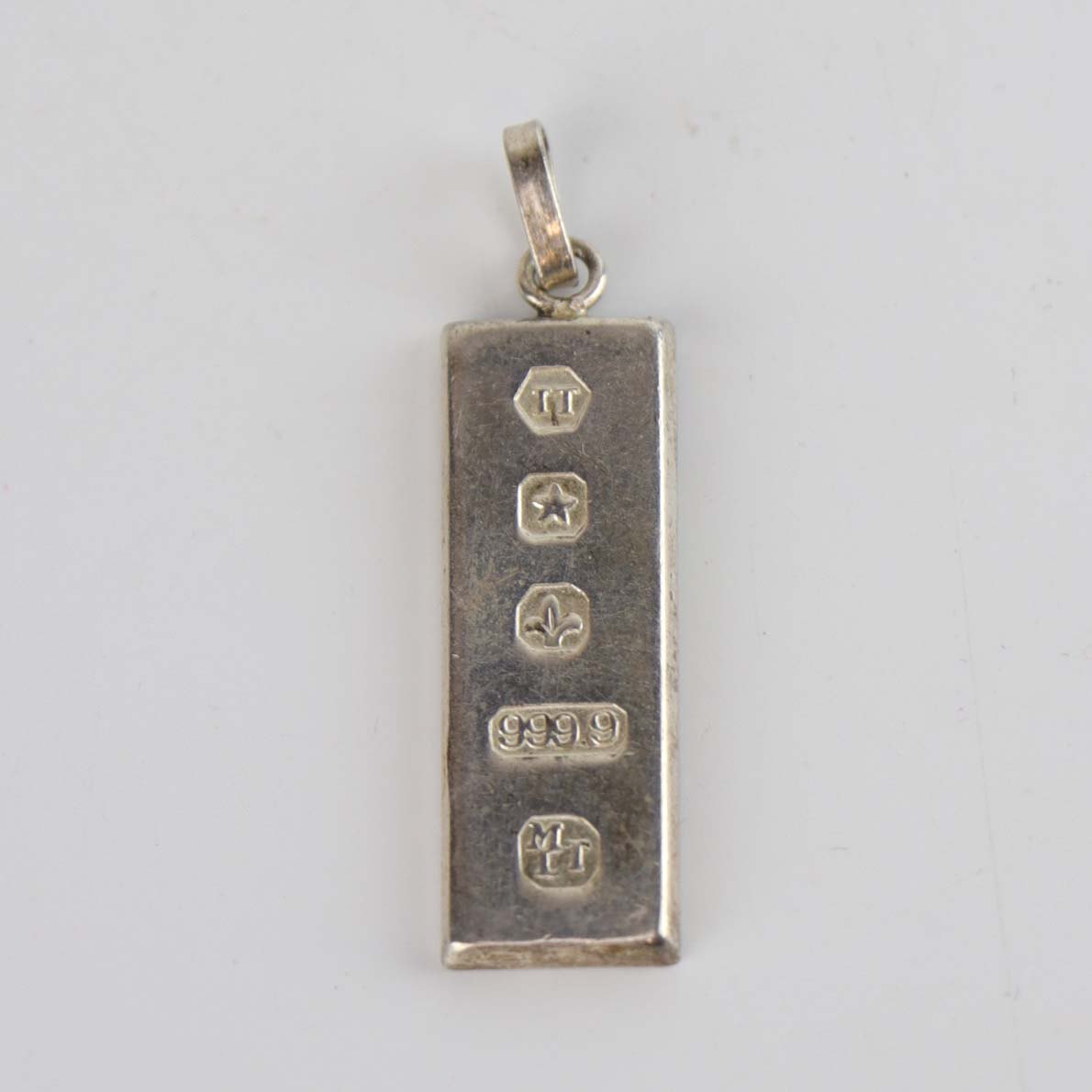 Vedhæng til halskæde i 999.9 sølv i form af en sølvbar