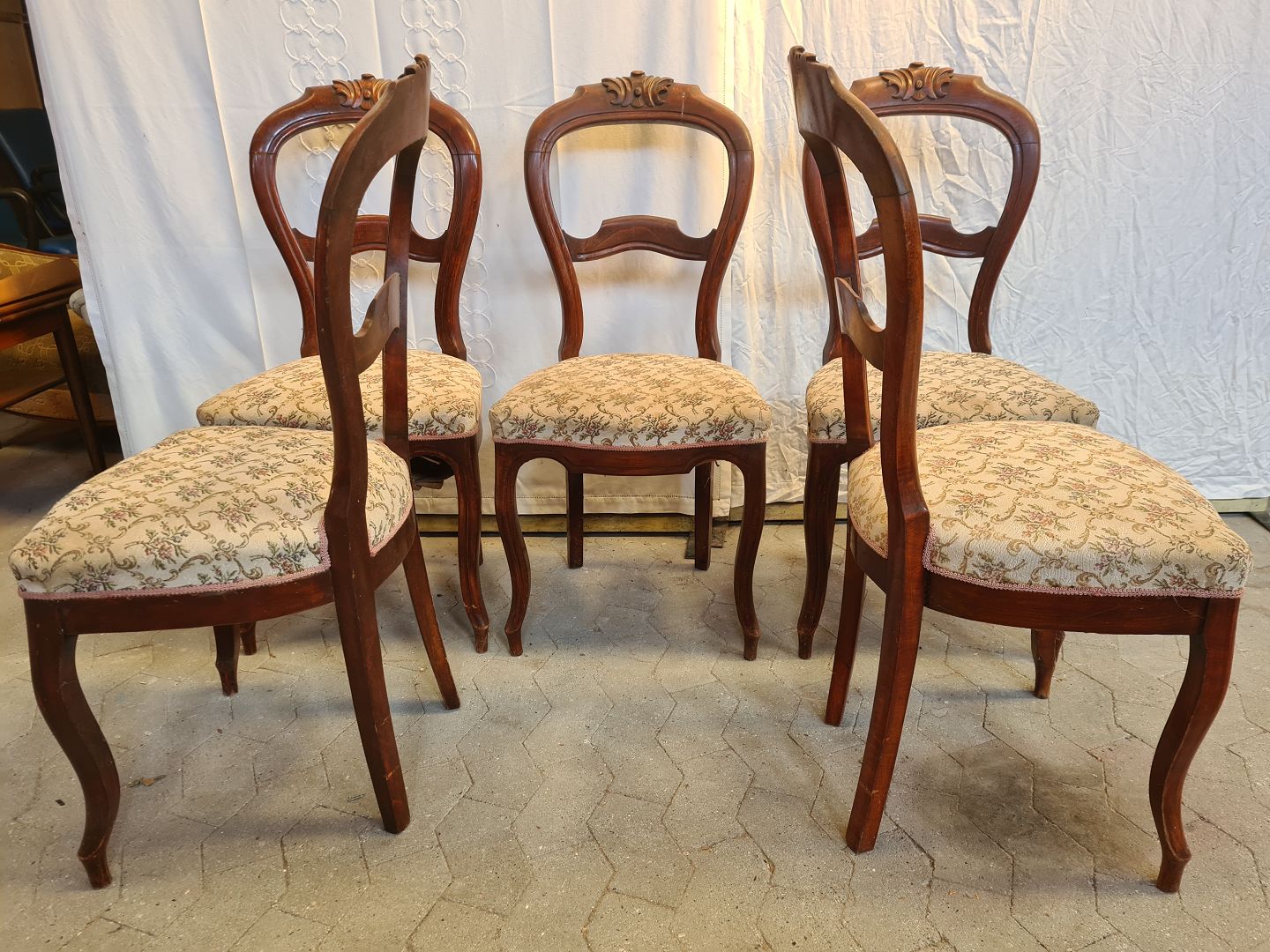5 Salonstole i massivt bøgetræ, fra 1910erne.