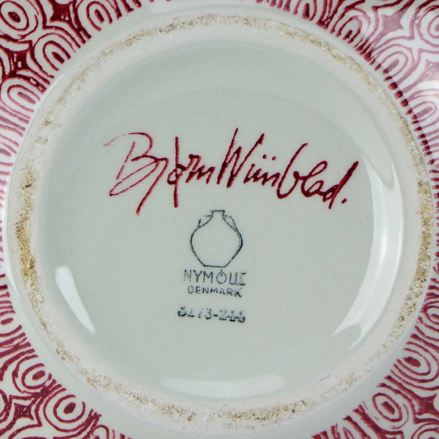 Lampefod i porcelæn og messing med motiv af de fire årstider i harlekinform udført i rød streg nr. 5173-244