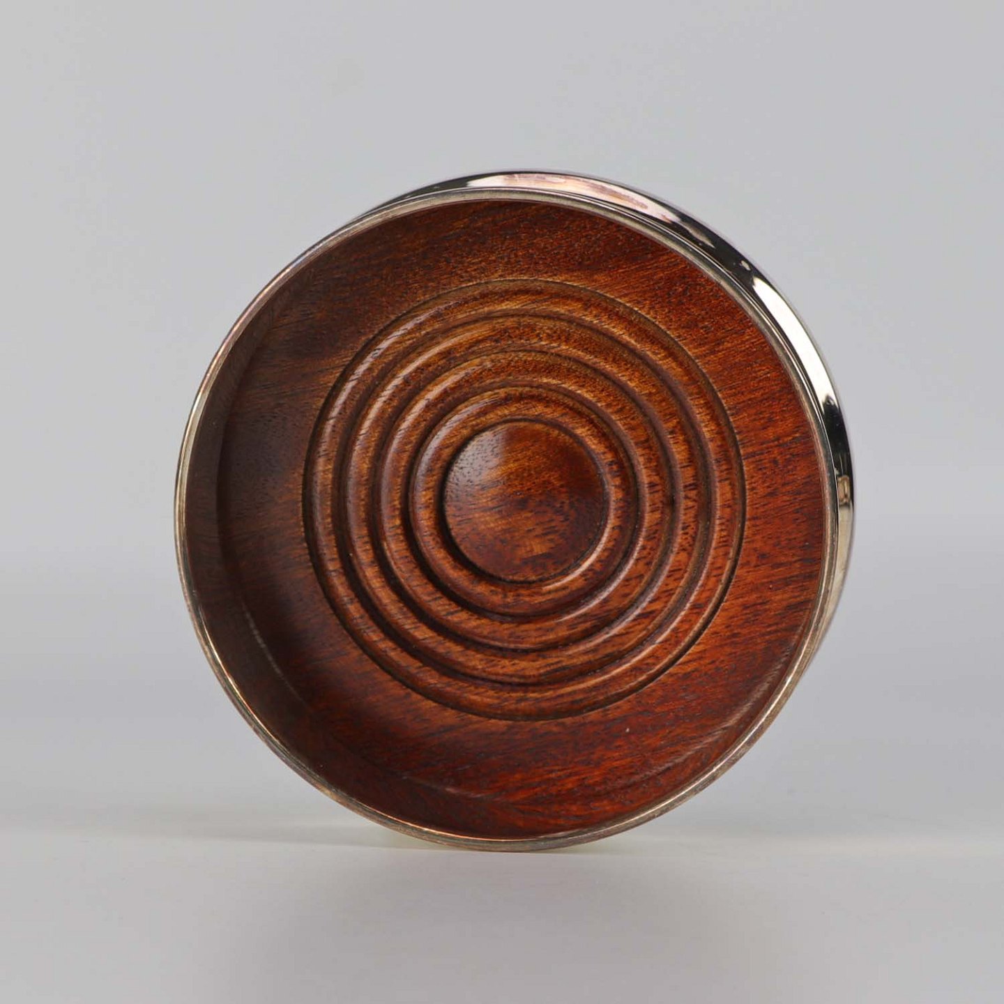 Engelsk bakke til afsætning af vin i pletsølv med bund af mørkt træ