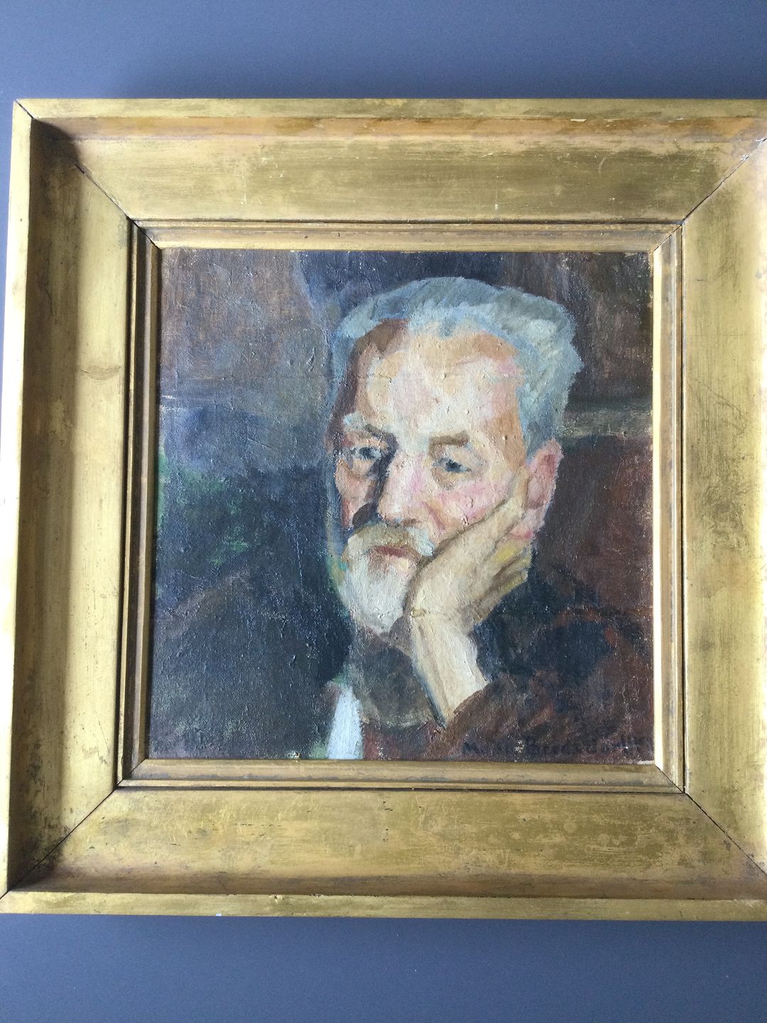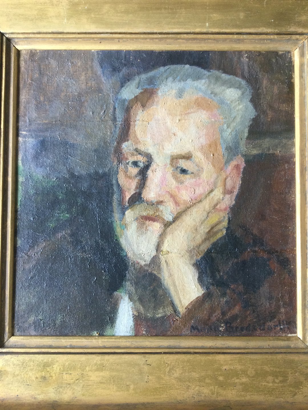 Text available in Danish: Maleri af Majsa Bredsdorff - Portræt af ældre mand 1920'erne.