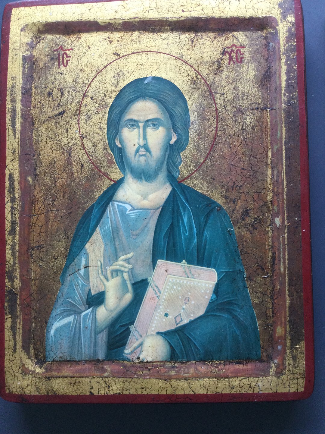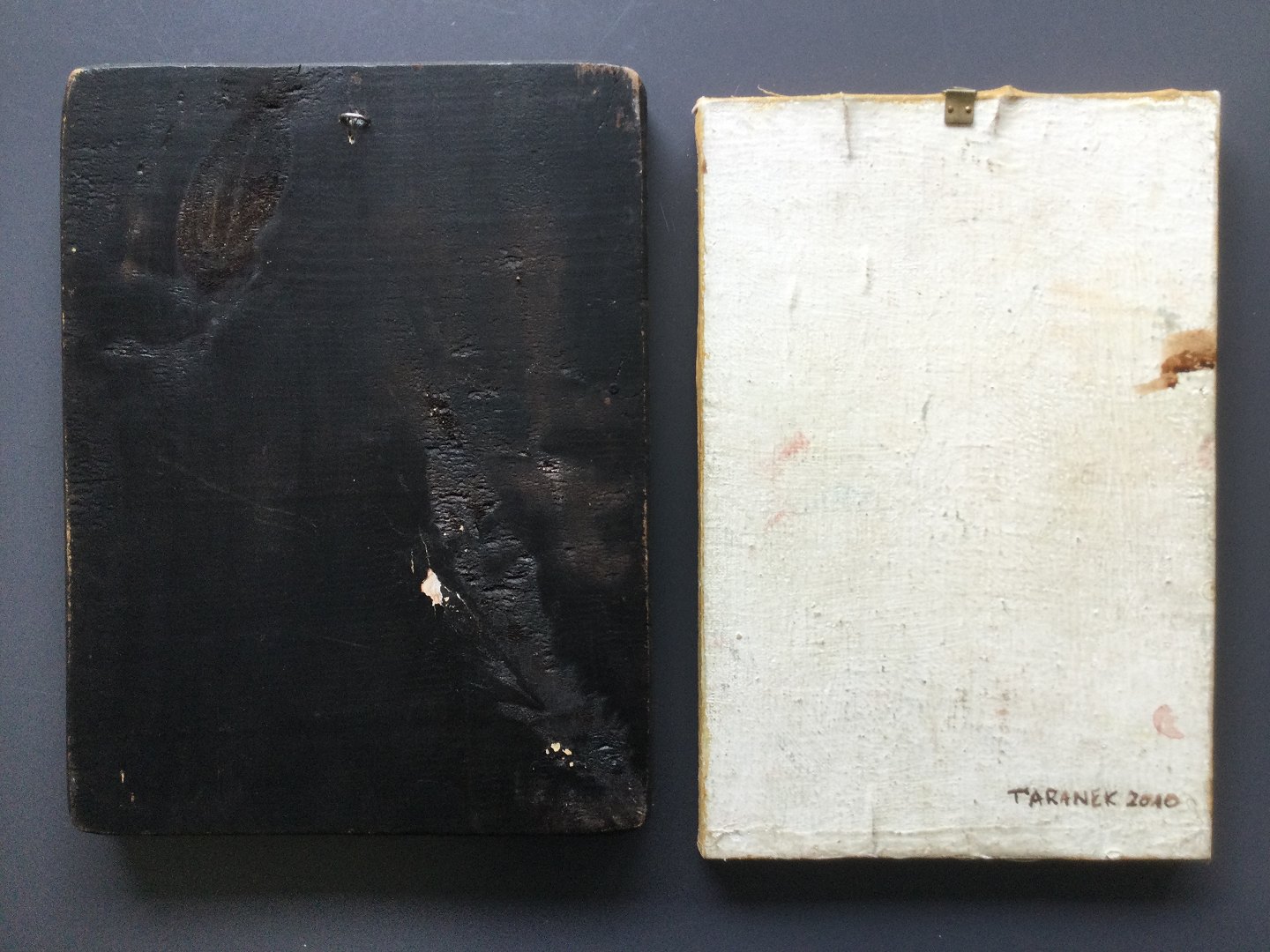 Træplader med bemaling, guld og tryk.
