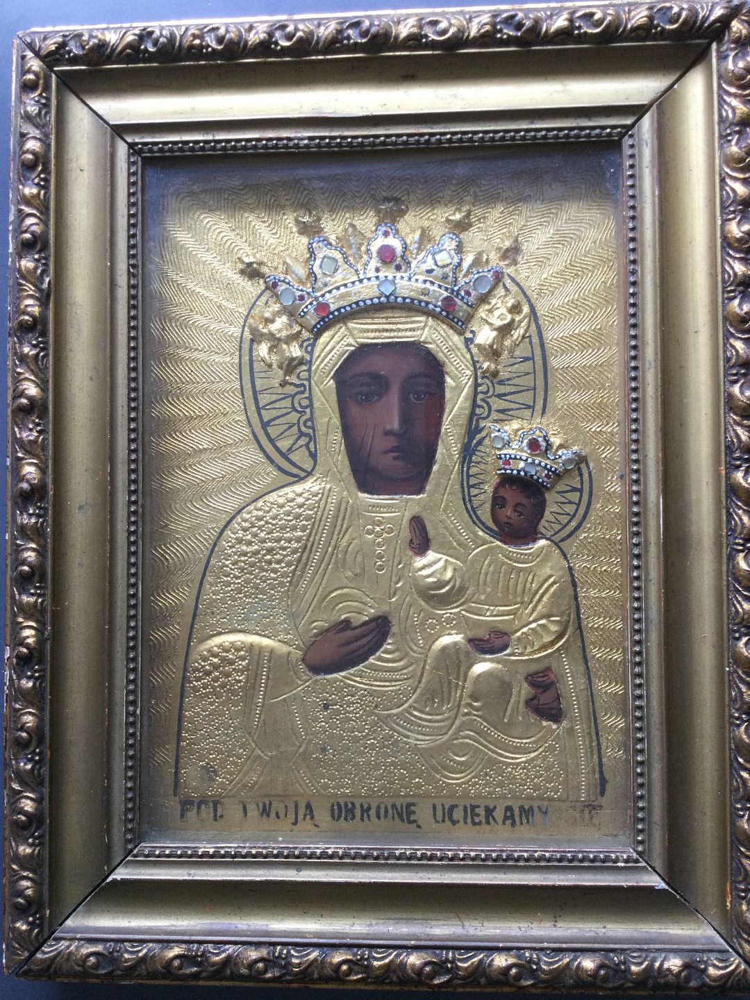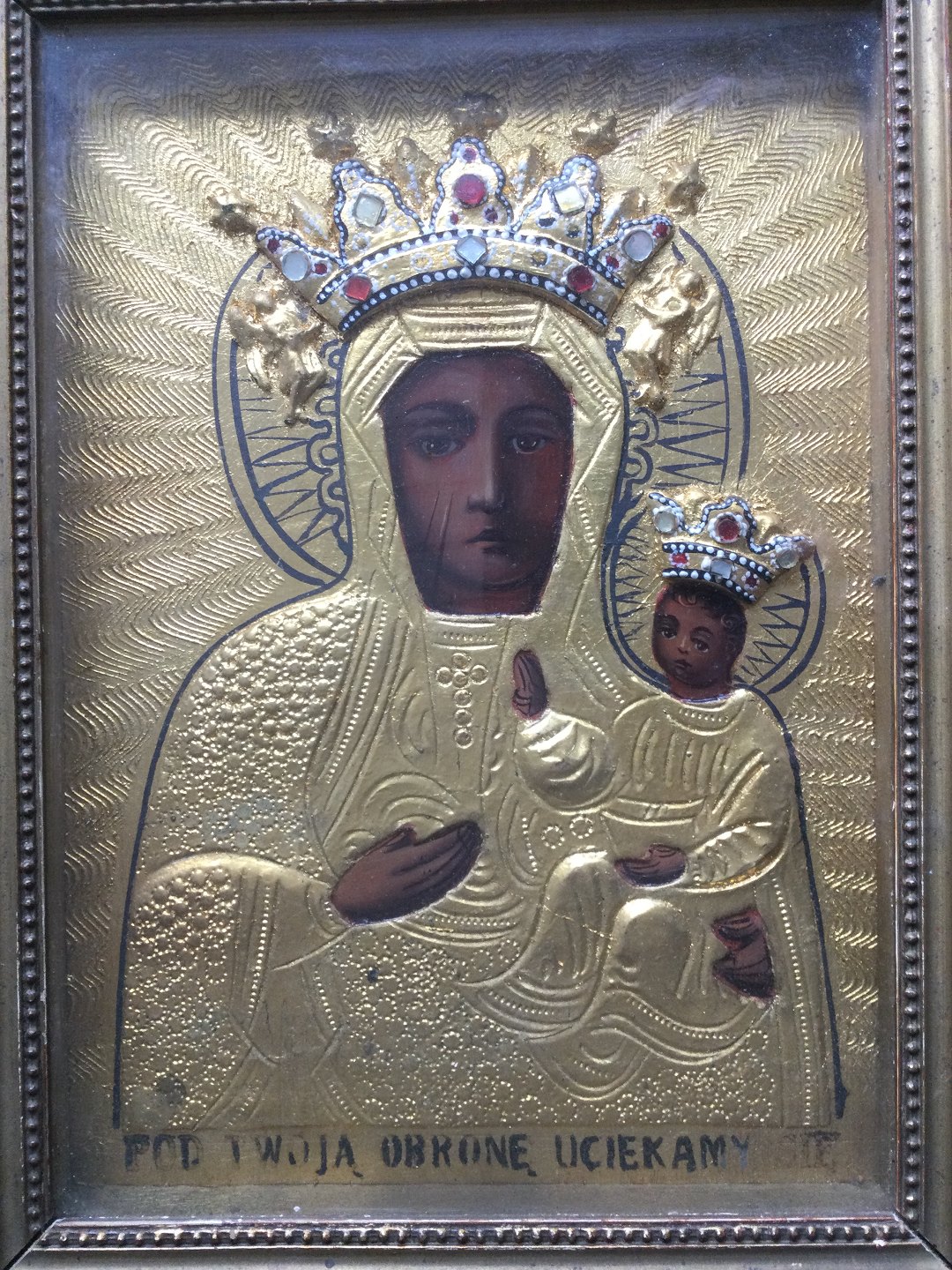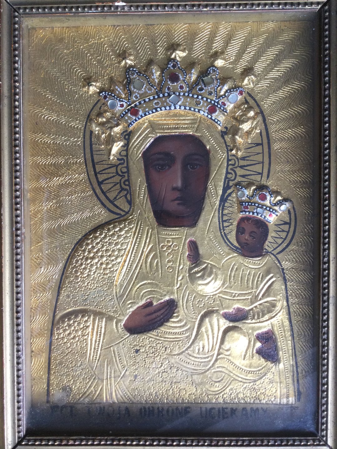 Gammel indrammet ikon - Den Sorte Madonna fra Czestochowa, Polen.
