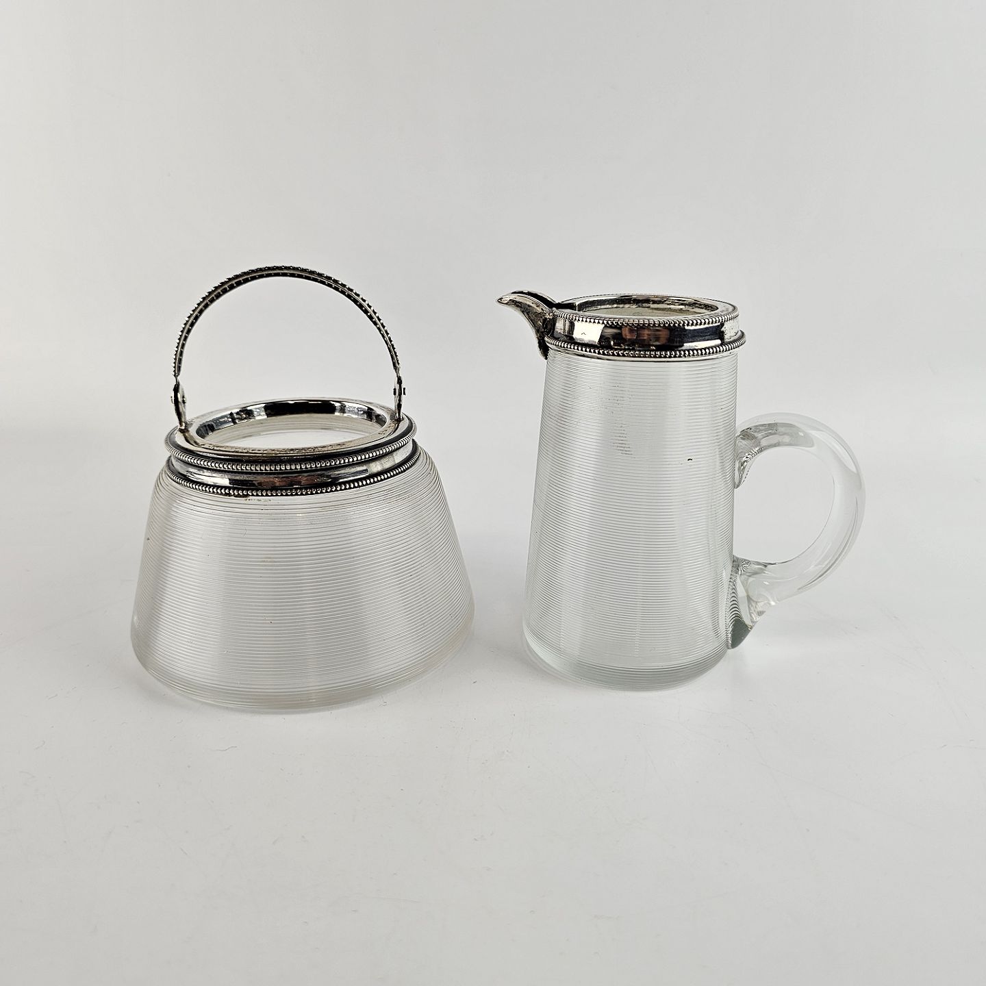 Sæt med Flødekande og sukkerskål. Lavet af glas og pletsølv