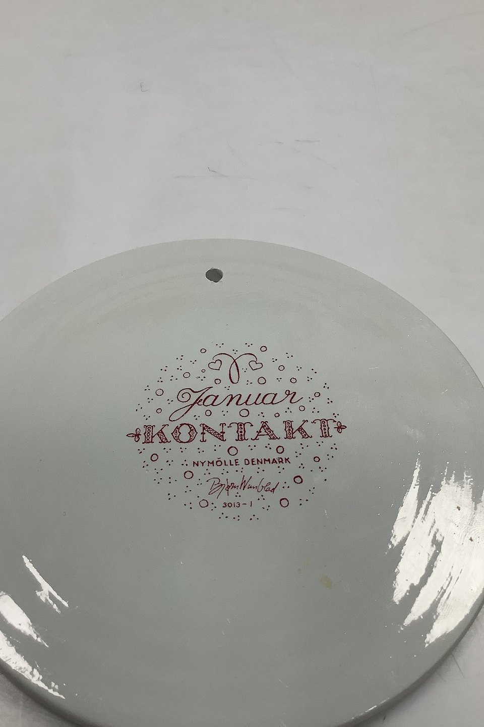 Rød månedsplatte i fajance for Januar - KONTAKT. Designet af Bjørn Wiinblad for Nymølle. I god stand. Fabriksmærket på bagsiden. Mål: 15 cm (5.90 inch.)