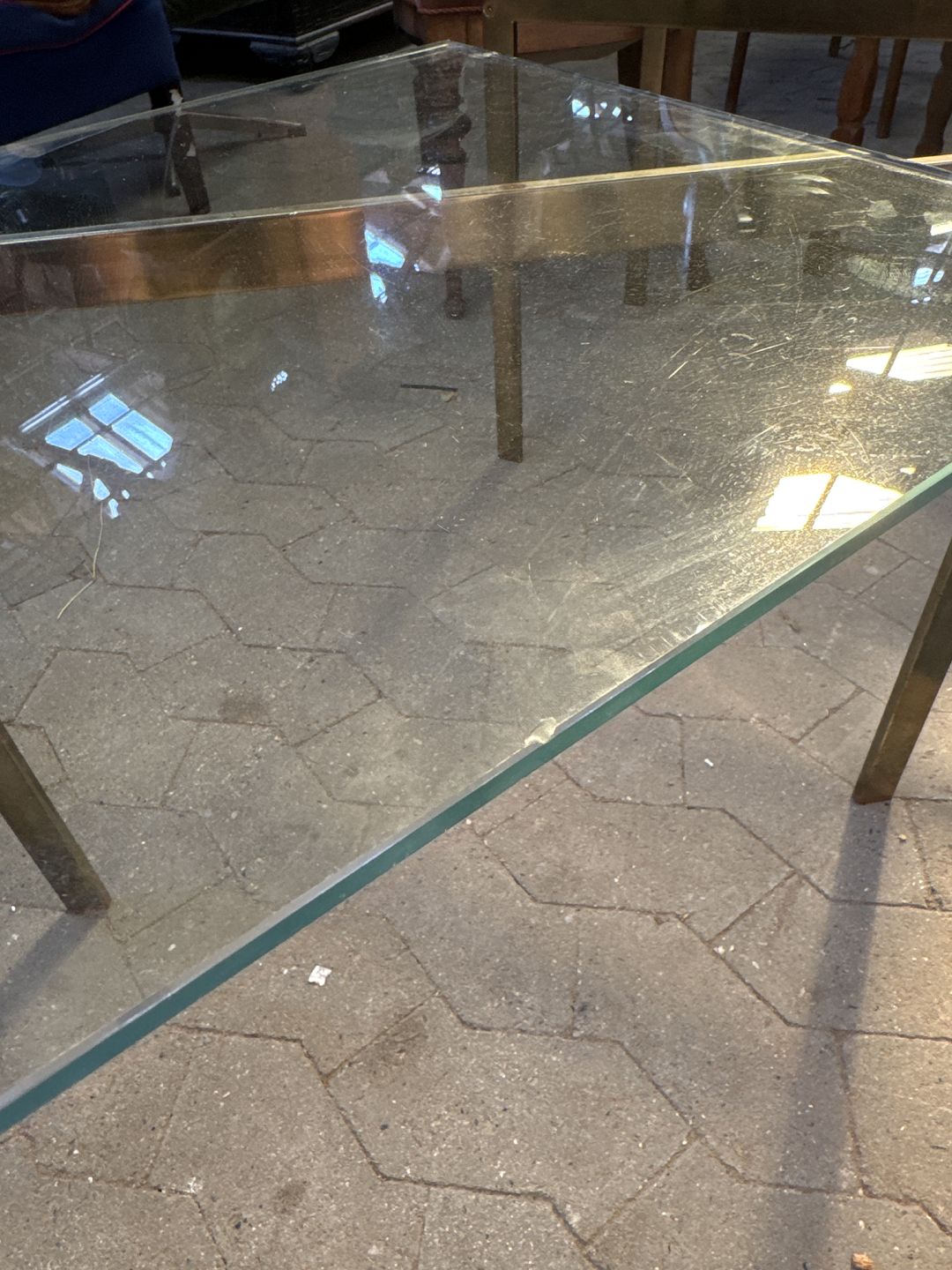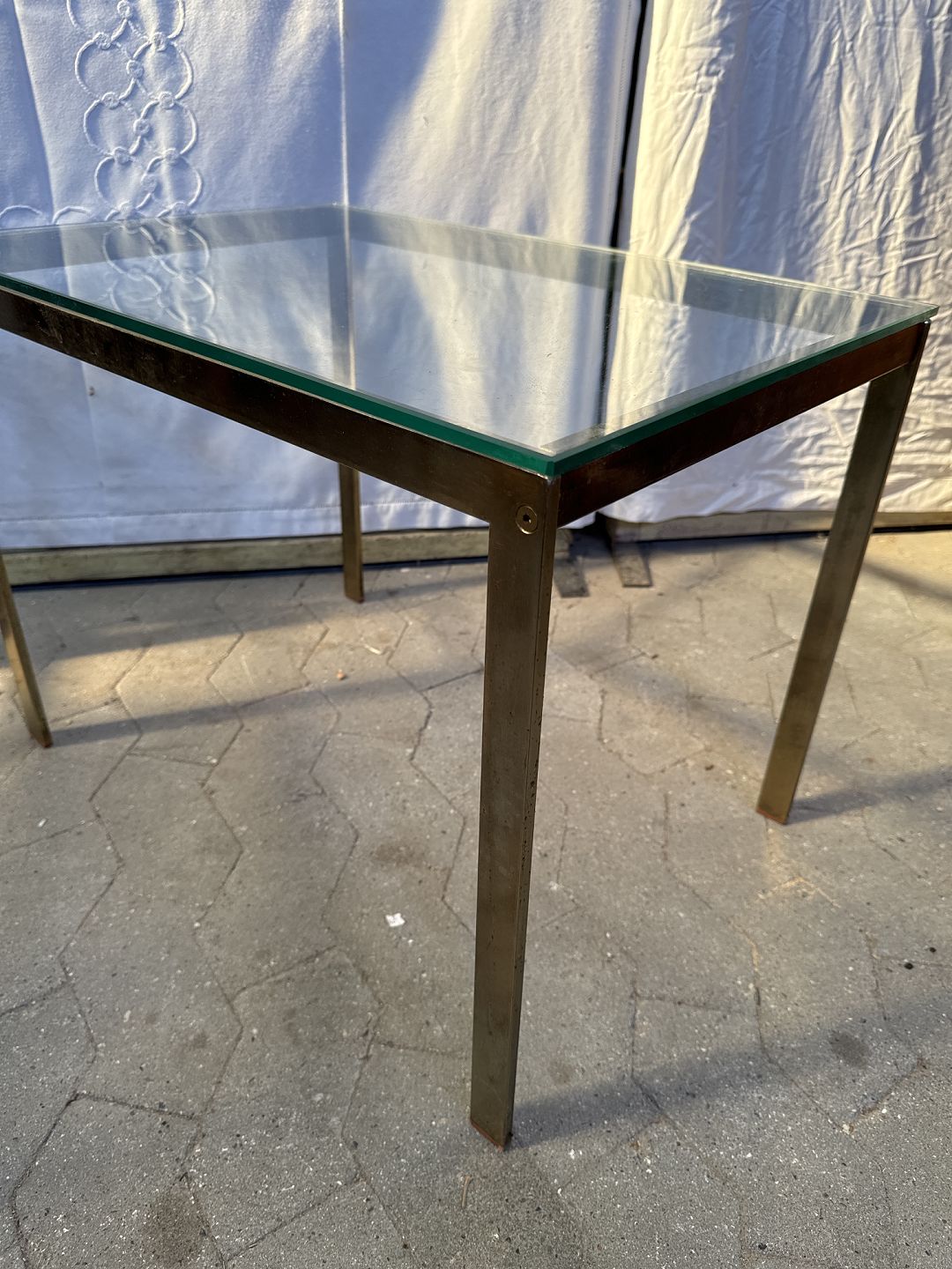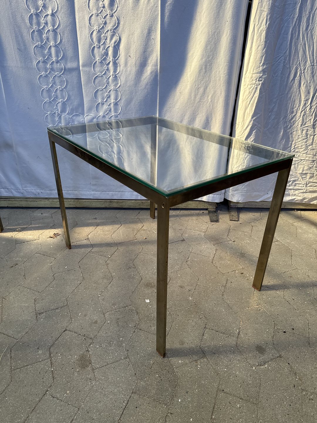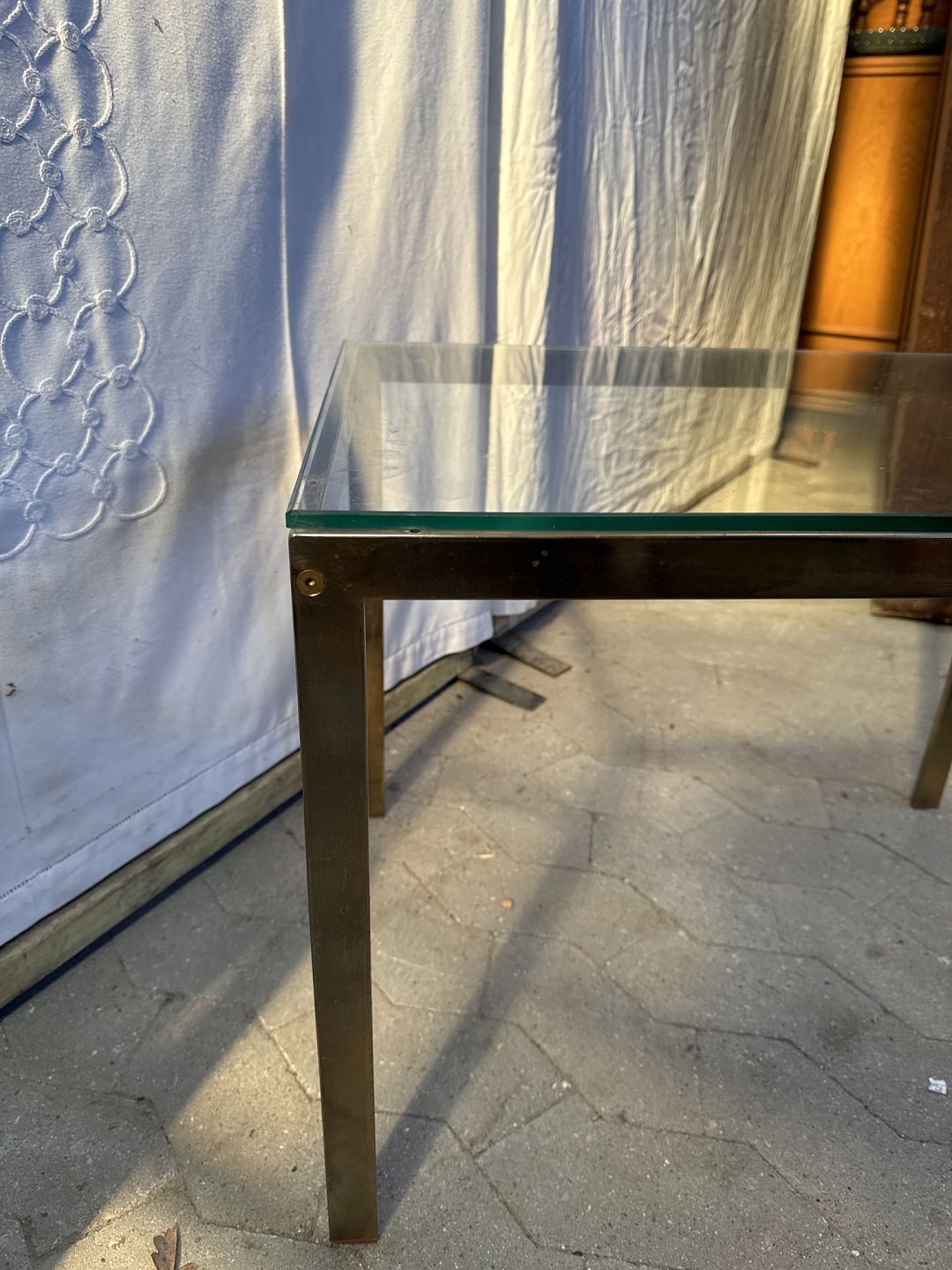 Lampebord med forgyldt stel og glasplade, fra ca 1980'erne.