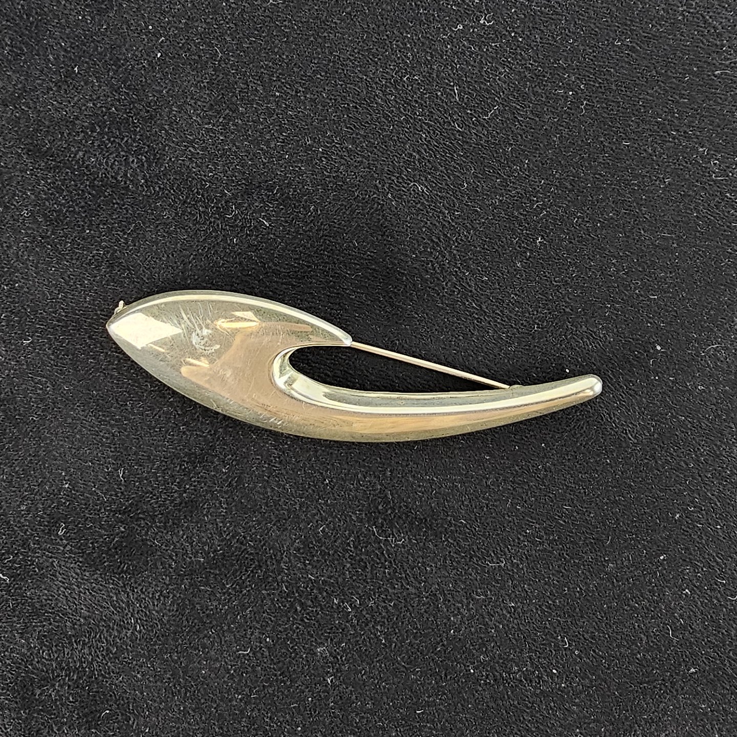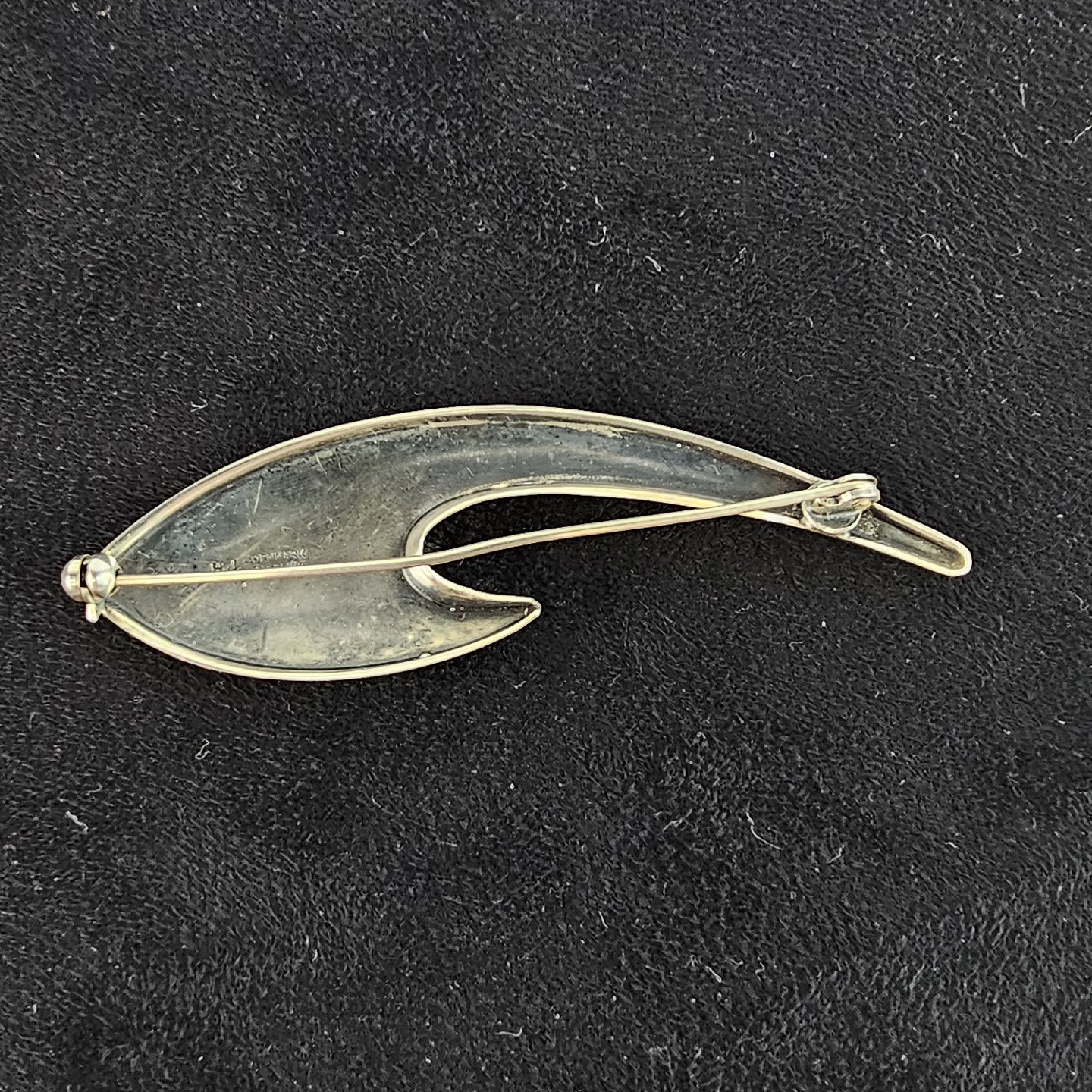 Broche af sterlingsølv formet med en bred og en tynd ende