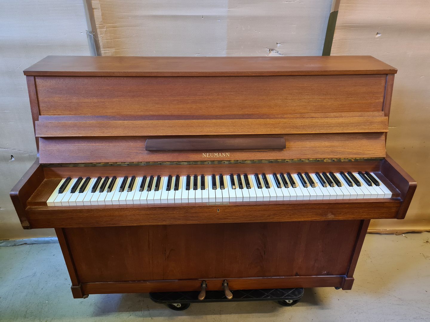 Neumann klaver i fineret teaktræ, fra 1960-1970erne.