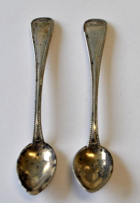 Two silver salt spoons, 1910, Denmark. Stamped. L.: 8 cm.