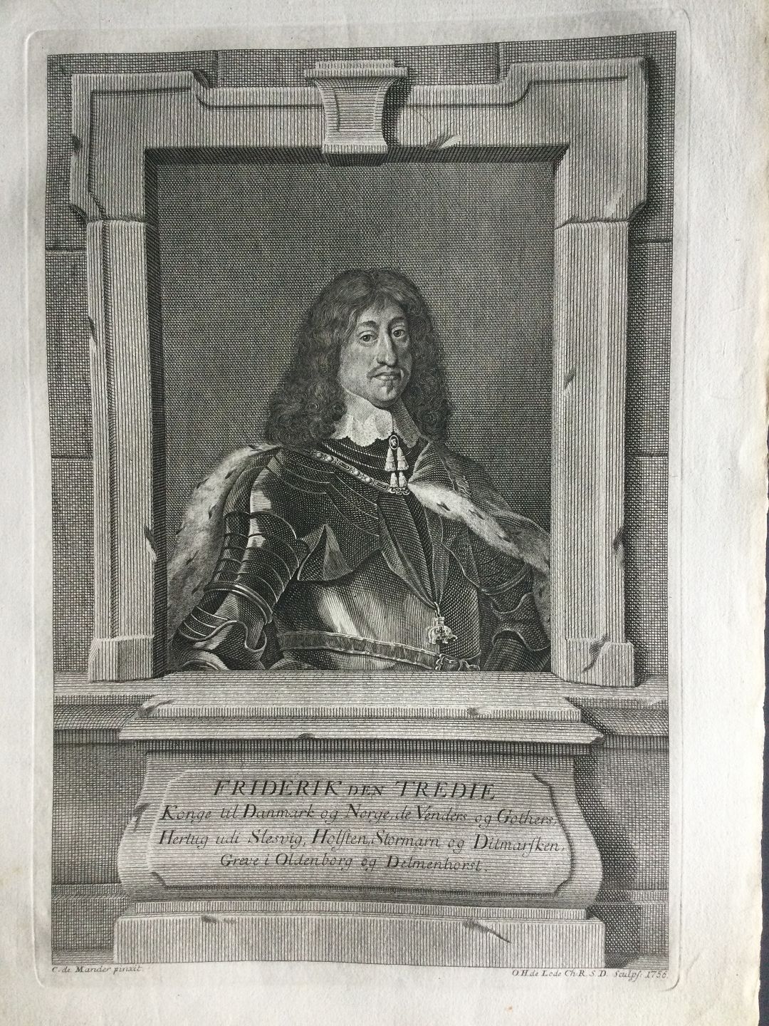 Betegnet "Friderik Den Tredie - Konge til Danmark og Norge, de Venders....".