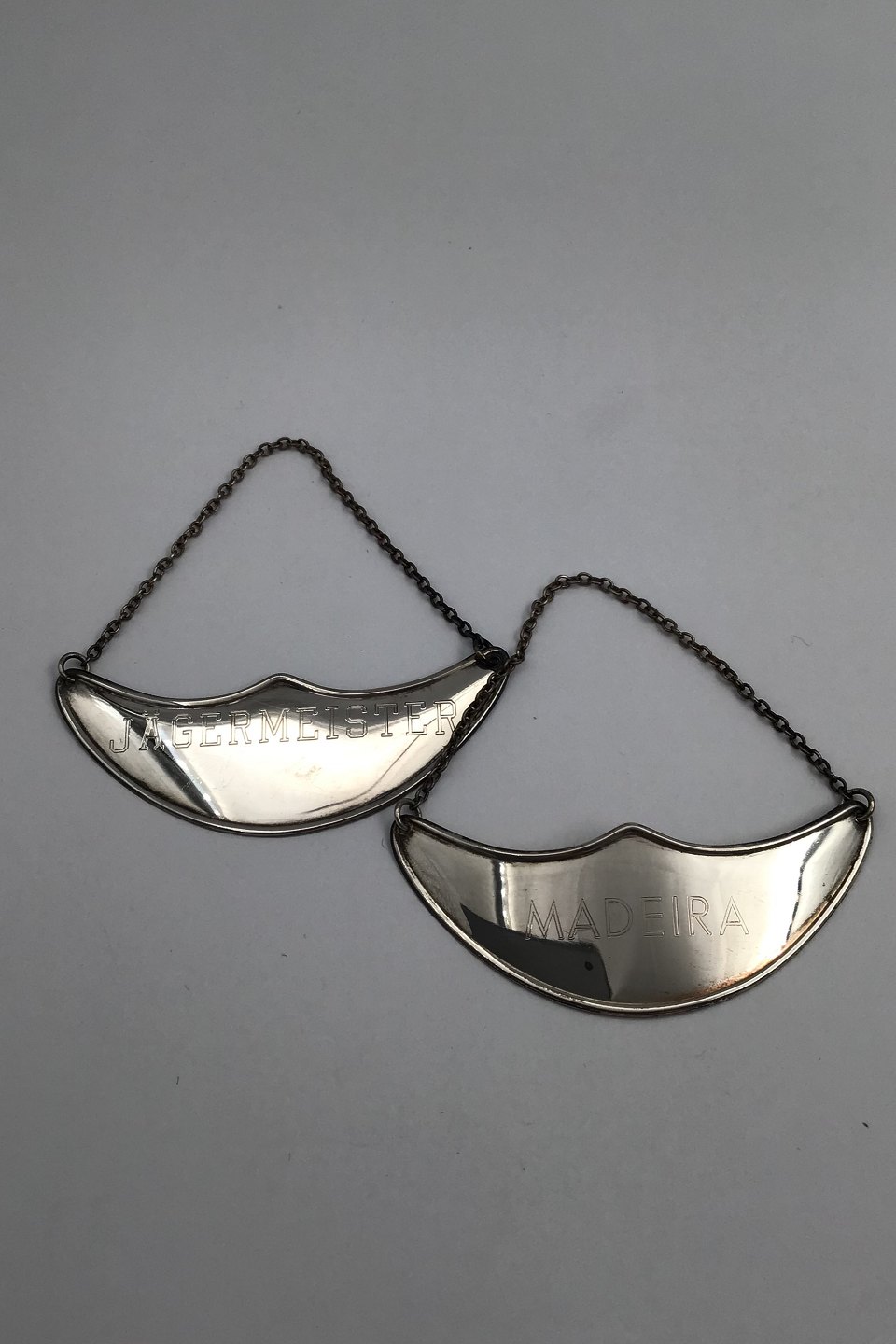 Dansk Sølv Flaskeskilte (2) Jägermeister / Madeira