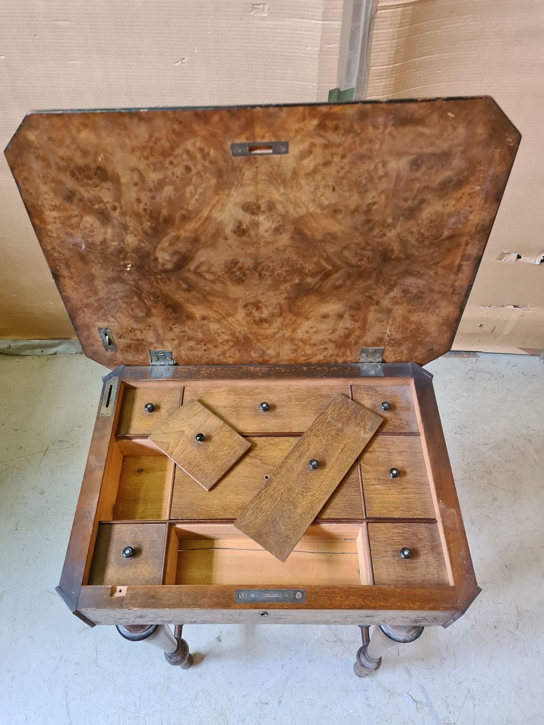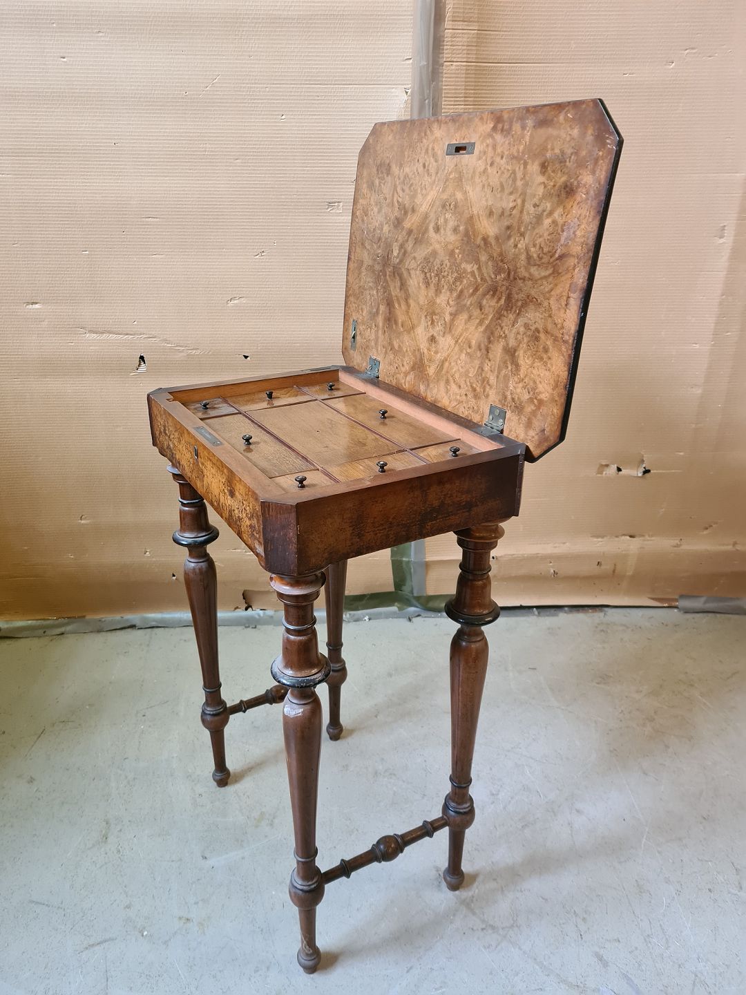 Sybord i fineret og massivt mahogni og bøgetræ, fra 1910erne.
