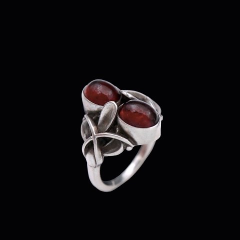 Georg Jensen. Sterling Silver Ring #48 with Garnet - Henry Pilstrup.