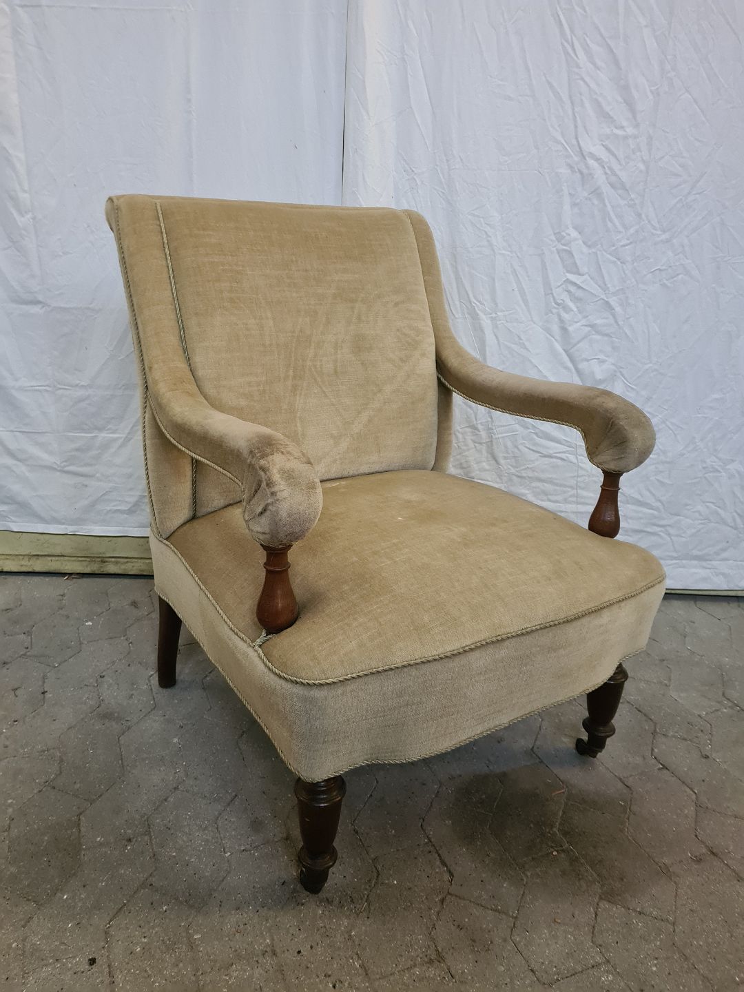 Lænestol i velour og bejdset bøgetræ, fra 1910erne.