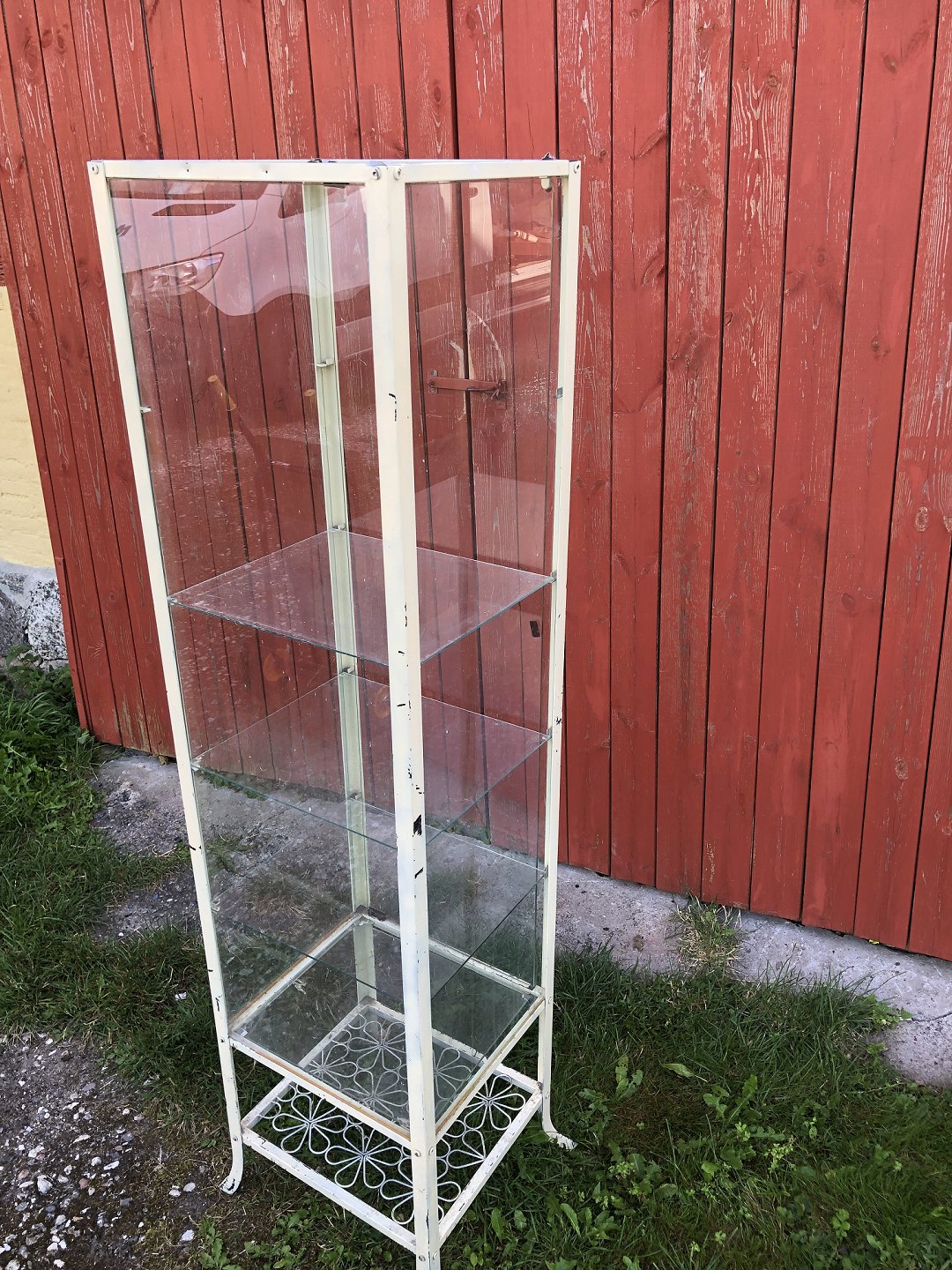 Udstillingsskab i metal og glas - med glashylder, Pæn brugt stand, 180x45x40cm