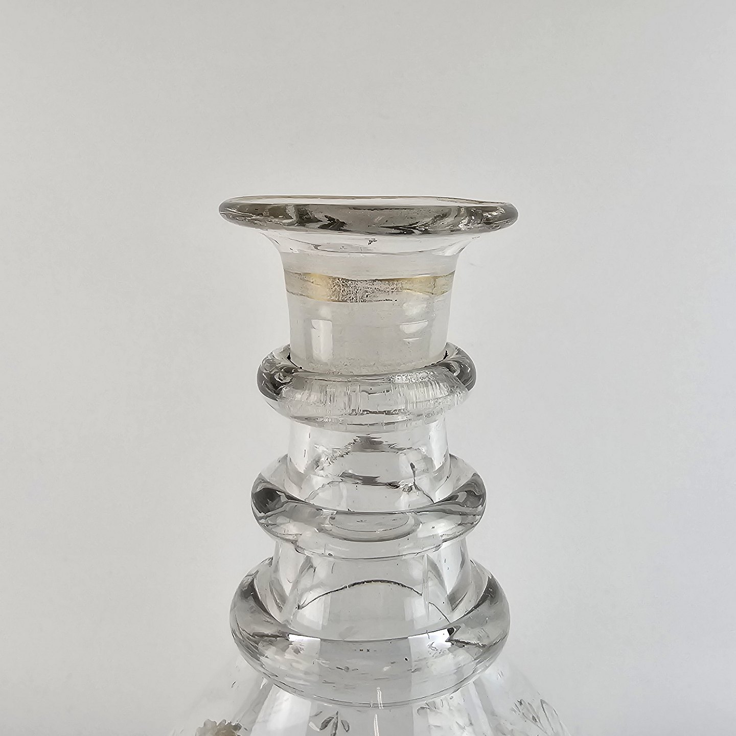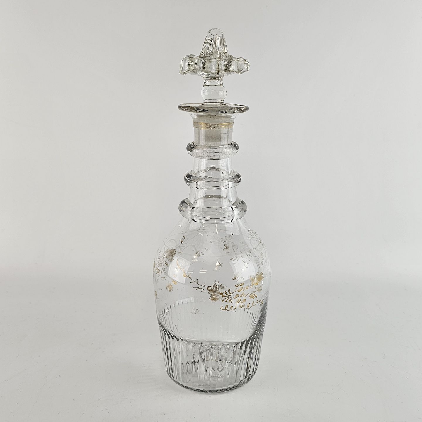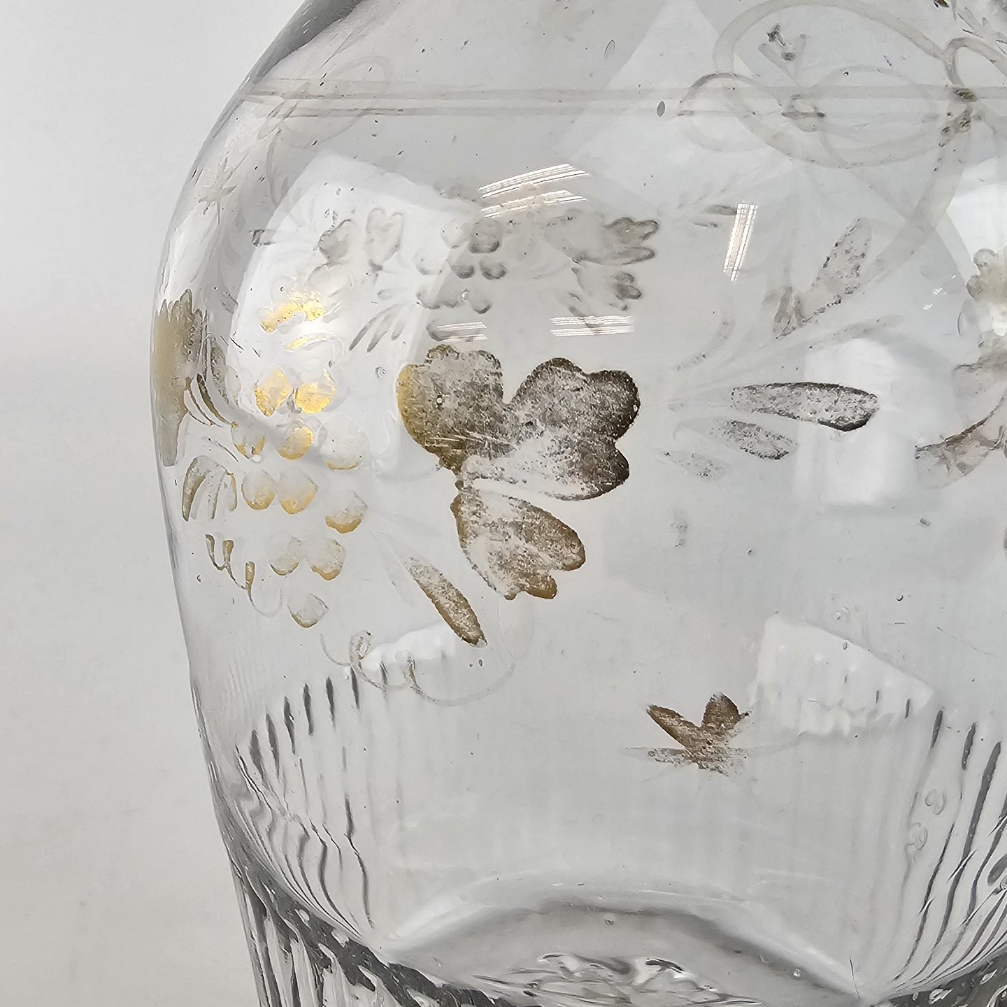 Glas karaffel dekoreret med lettere falmet guld emalje