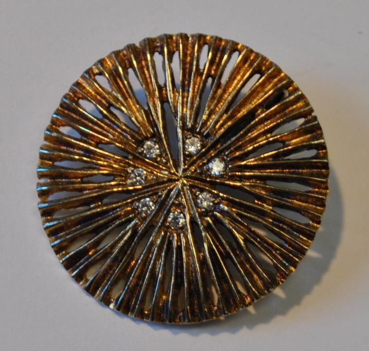 Forgyldt sterling vedhæng, 20. årh. Kranz & Ziegler ApS, Odense (efter 2004). Stemplet. Dia: 3,6 cm. Dekoreret med syntetiske zirkonia.