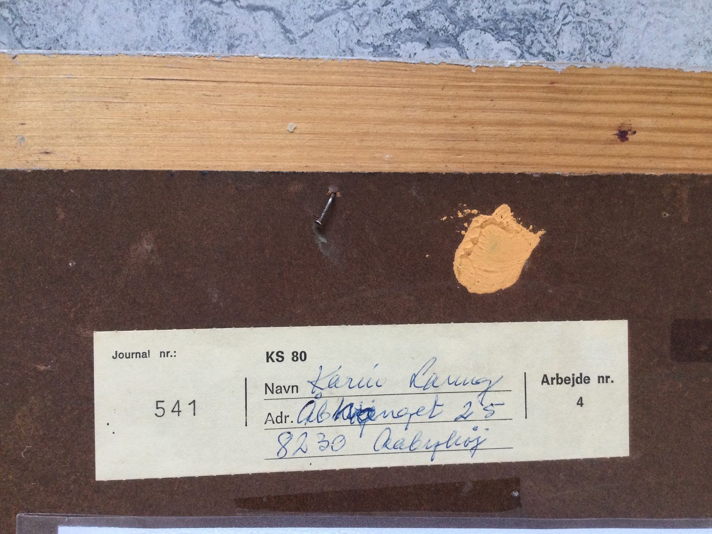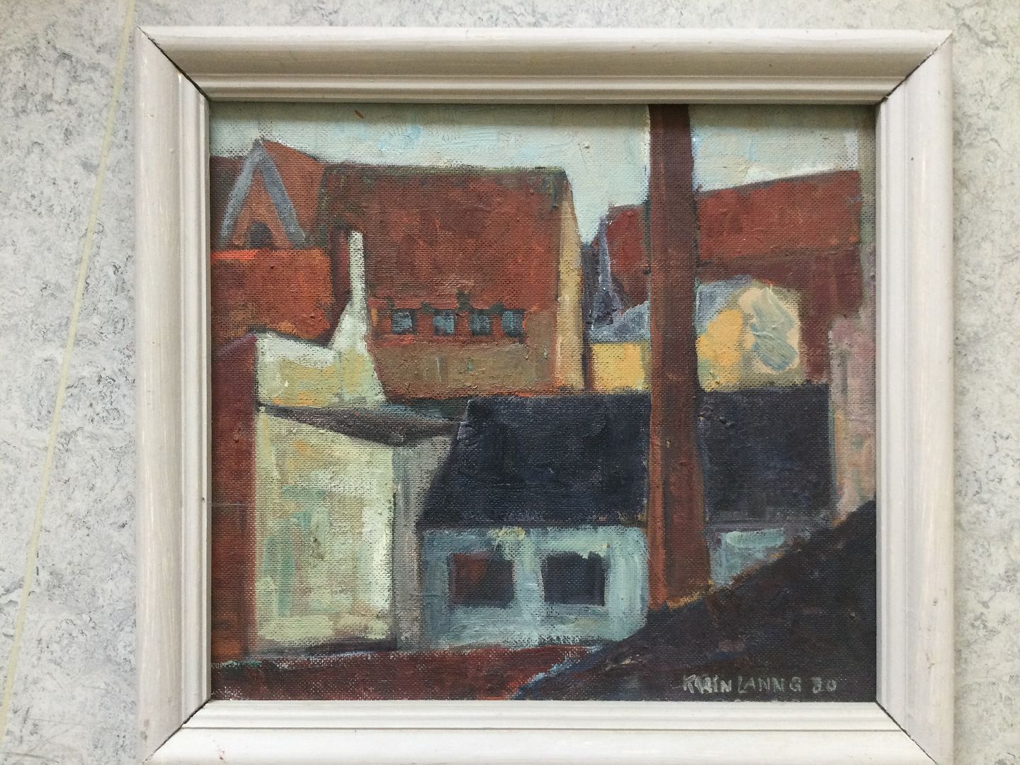 Maleri af Karin Lanng - Huse og skorsten 1980.