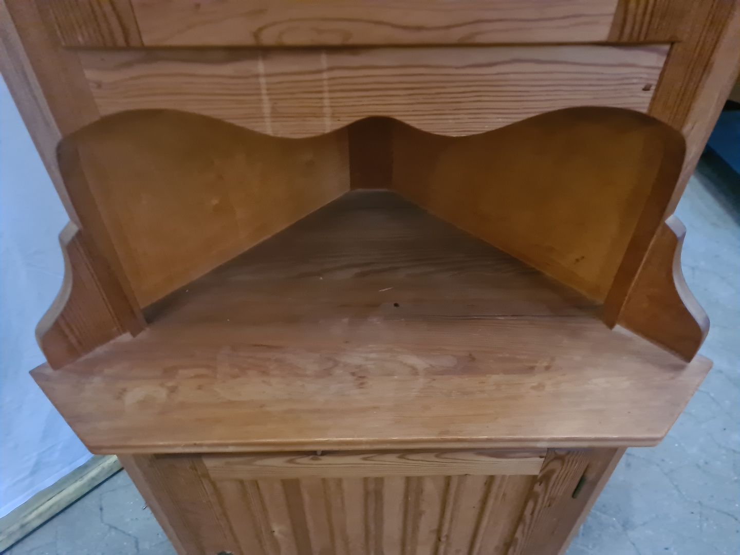 Hjørneskab i massivt fyrretræ, fra 1980erne.