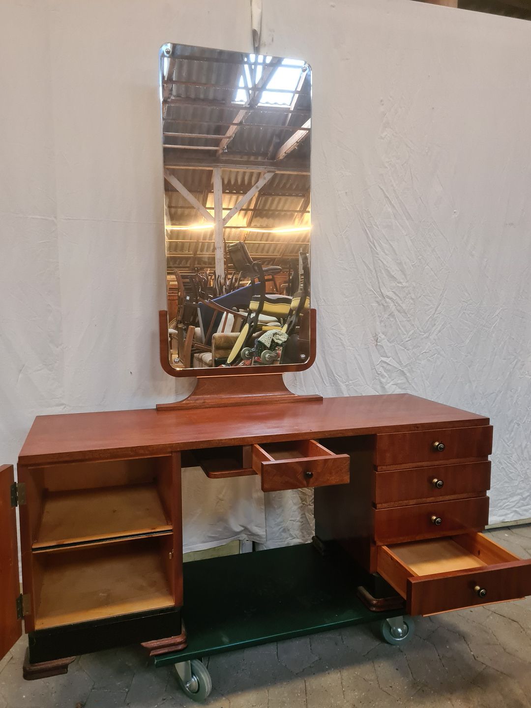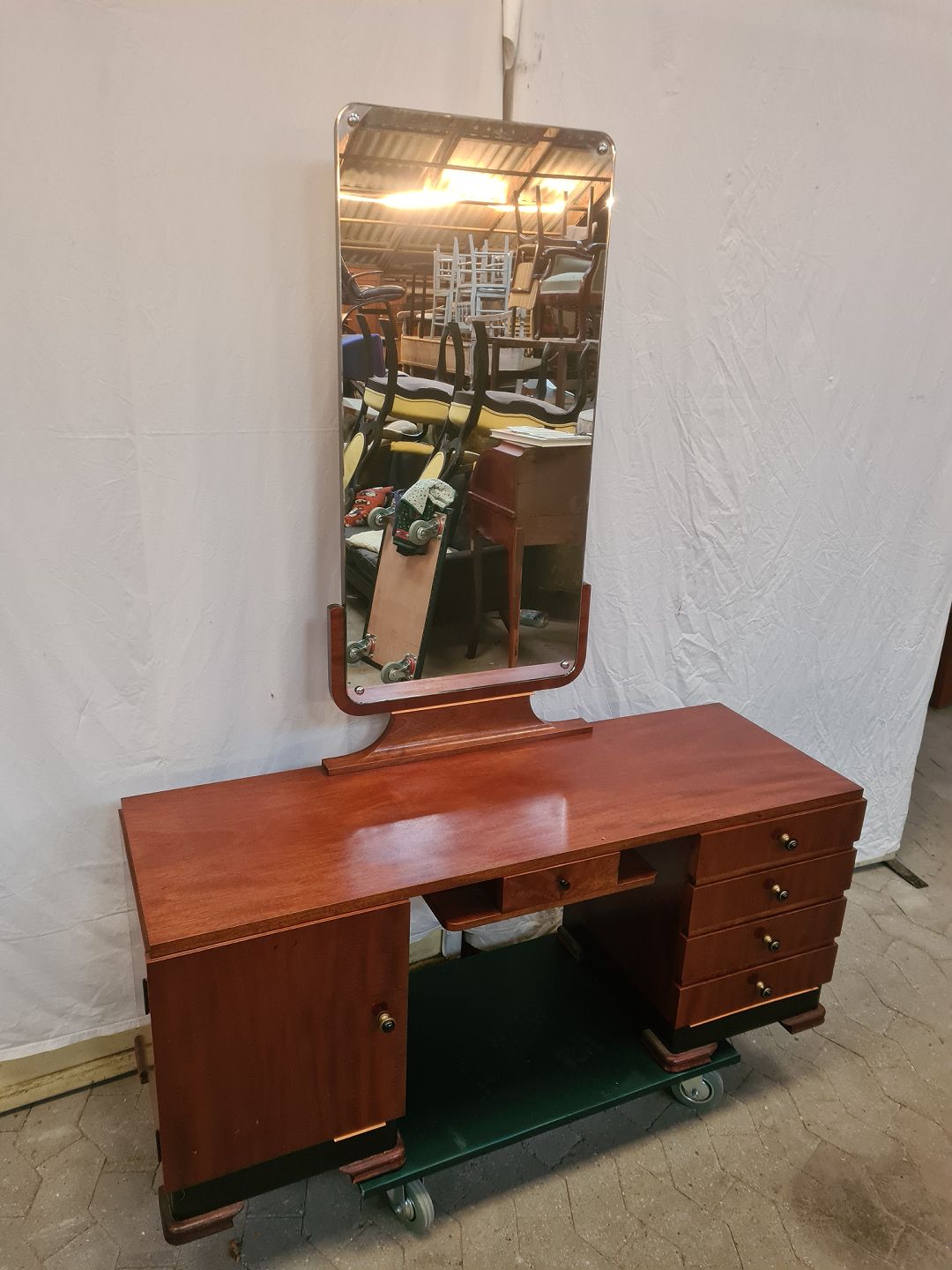 Sminkebord i fineret mahogni, fra 1930erne.