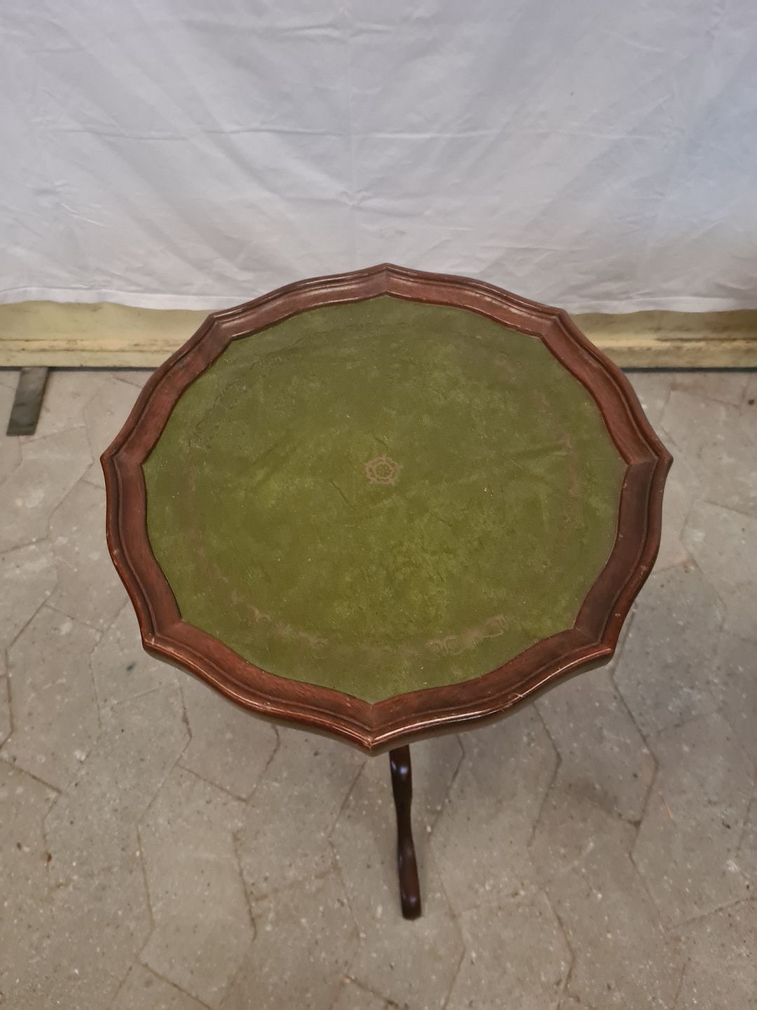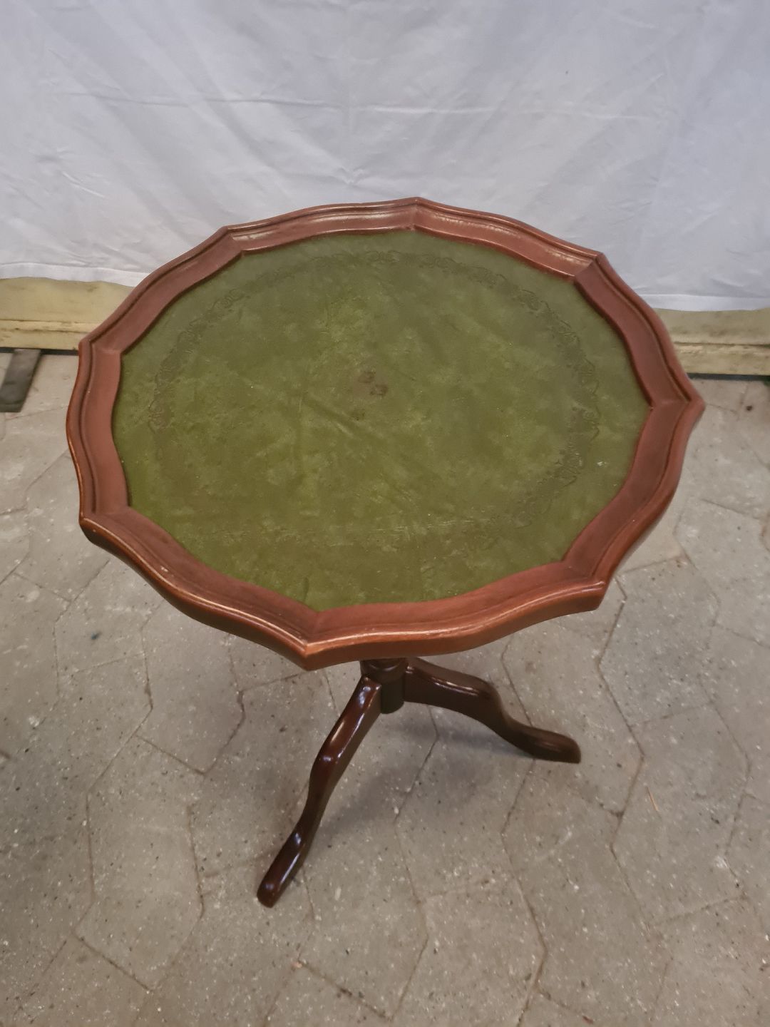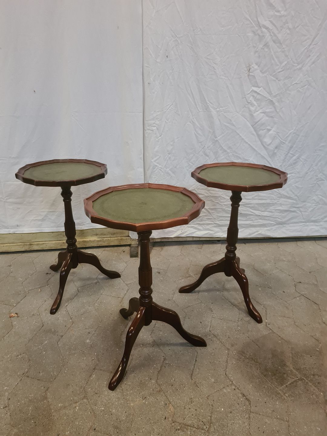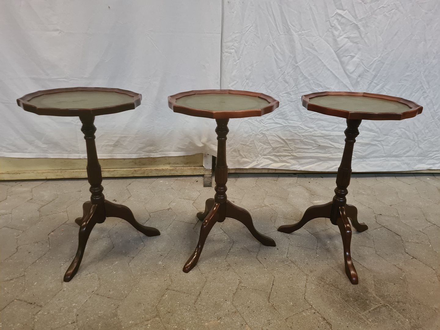 3 Små borde i bøgetræ med kunstlæder indlæg, fra 1990erne.