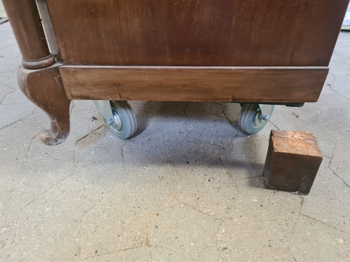 Det har brugsspor, løst bagben, løs liste og der medfølger ikke hylder.