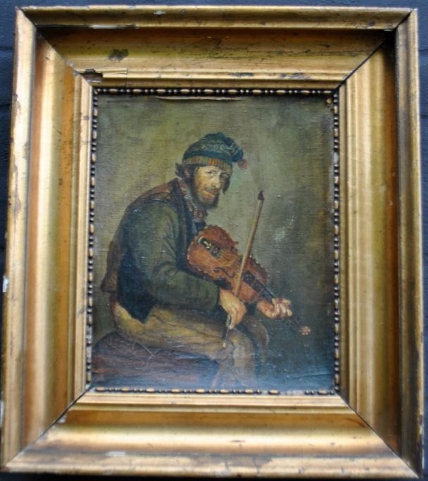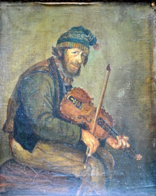 Dansk kunstner (19. årh.): Mand med violin. Olie på malerpap. Uden signatur. H: 29 cm. B: 24 cm.