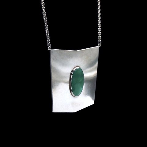 Ejnar Olsen. Vedhæng i sterling sølv med grøn agat.