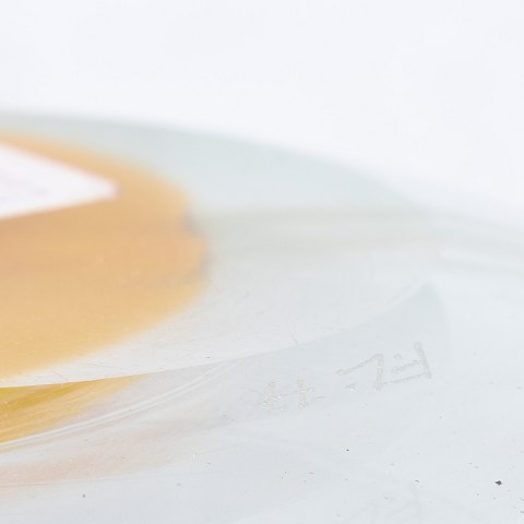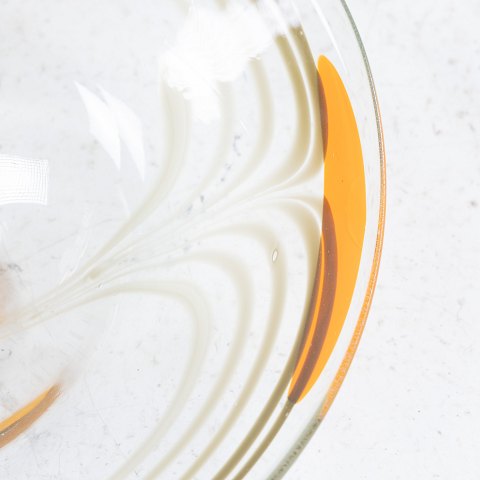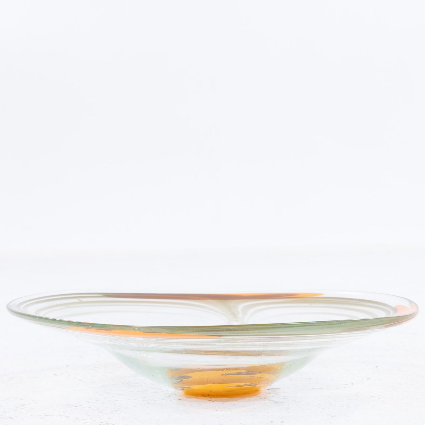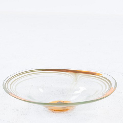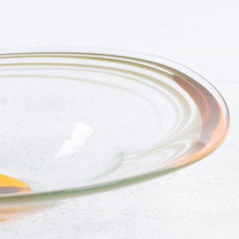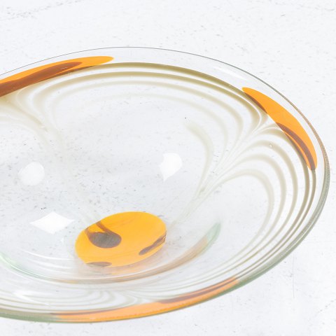 Glasfad m. mønster i orange og grønne farver. Signeret. 1977.