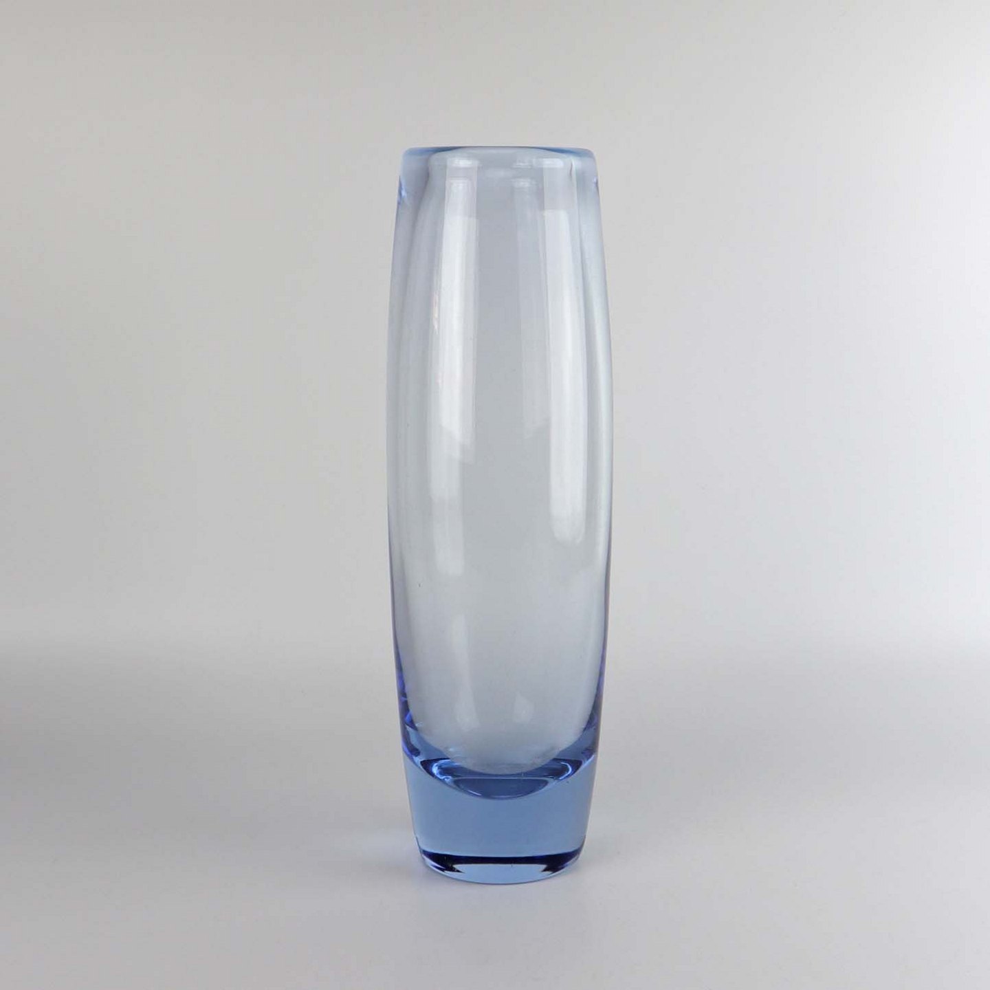 Høj torpedoformet vase i aqua blå glas. Nr. 18122