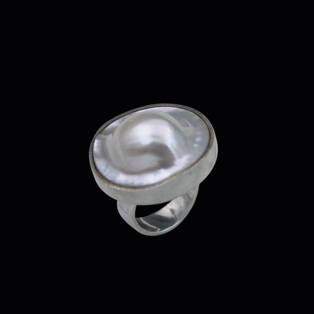 Janne Buchhave Tofteberg. Ring i sterling sølv med mabé perle.