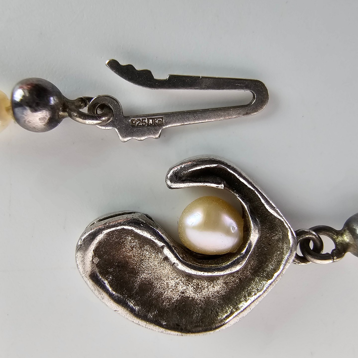 Halskæde med ferskvandsperler og med lås af Sterlingsølv, 925s