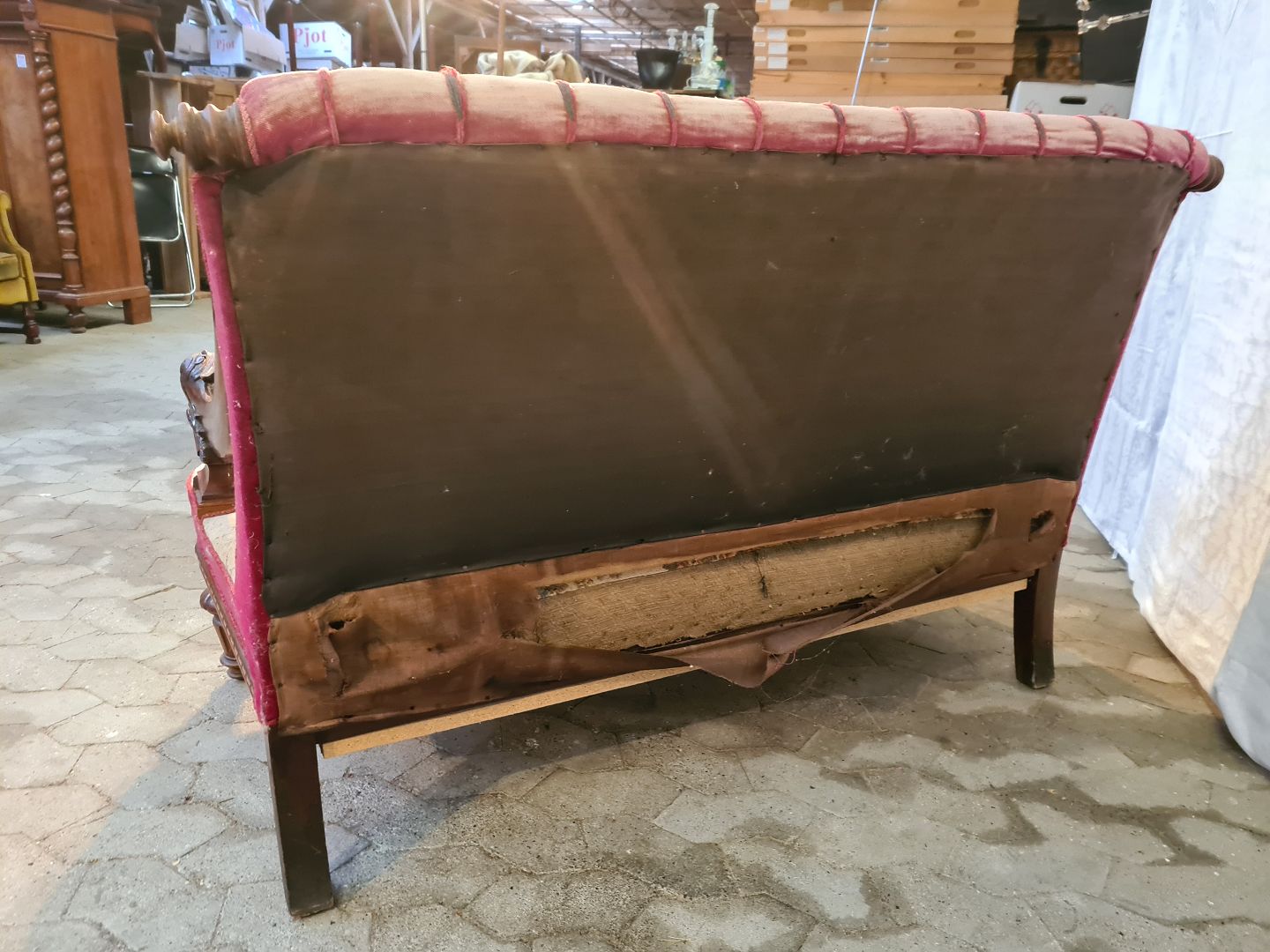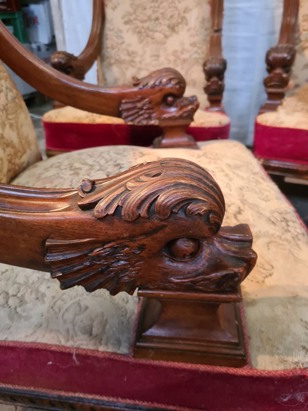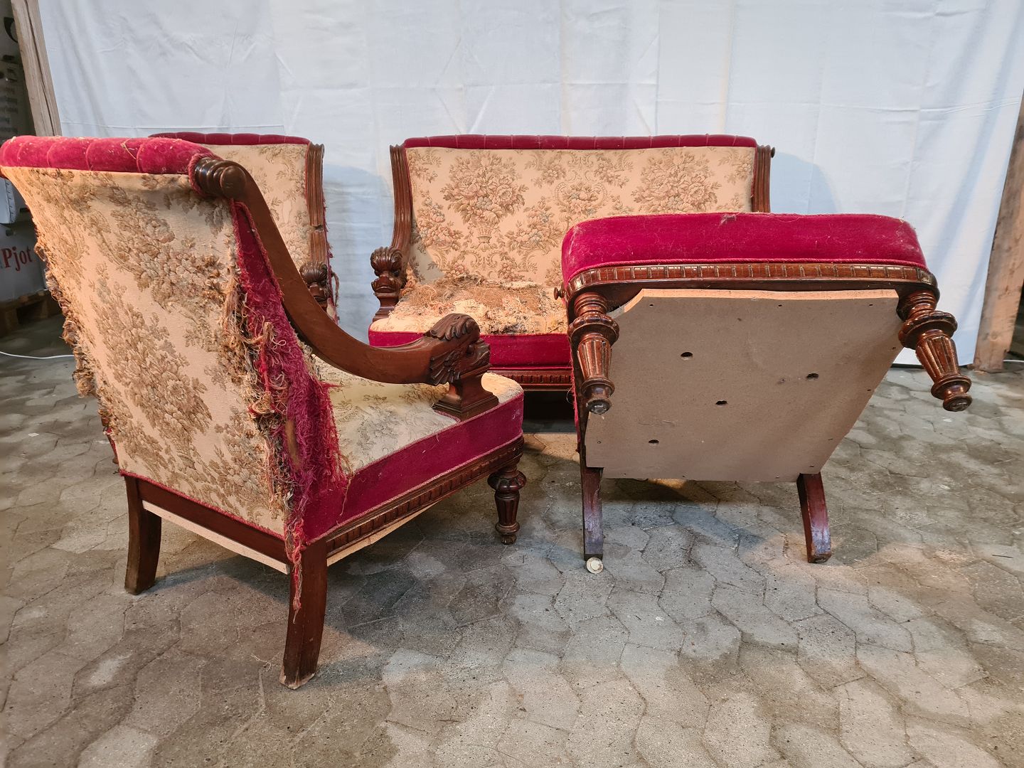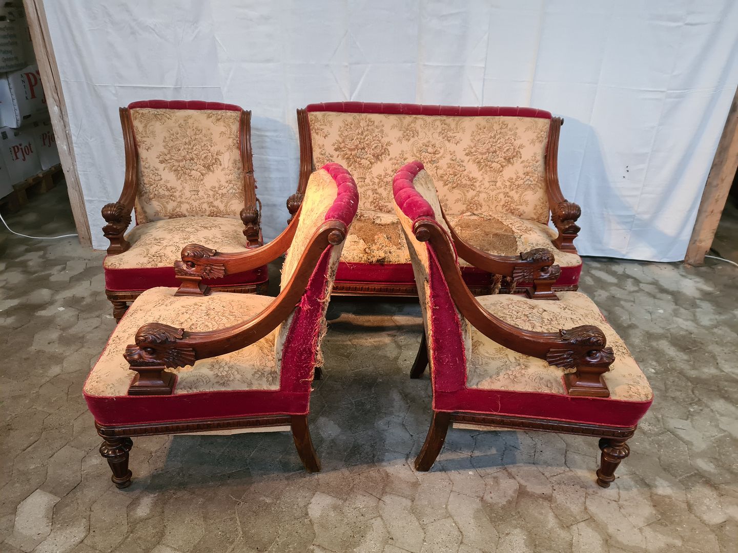 Sofa og 3 lænestole i massivt mahogni, fra 1910erne.