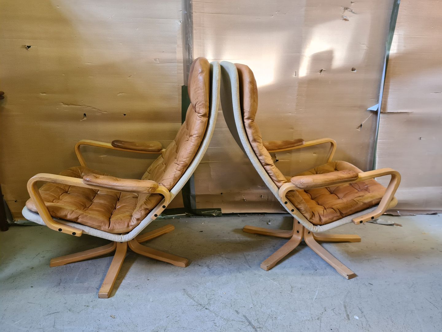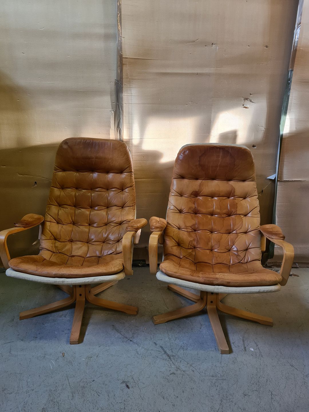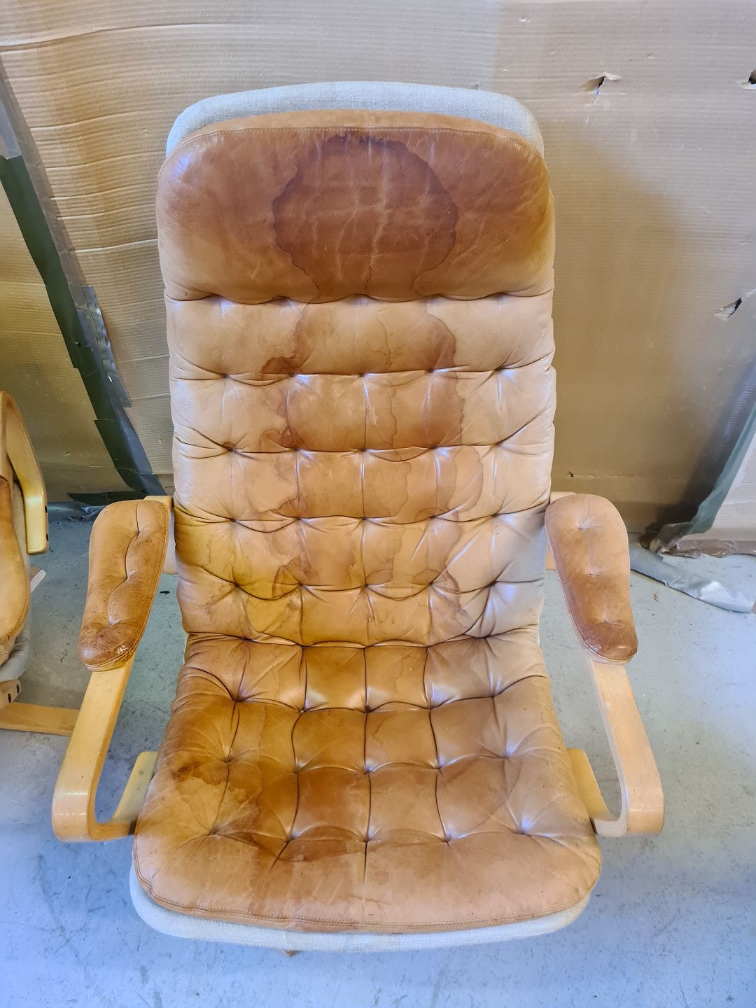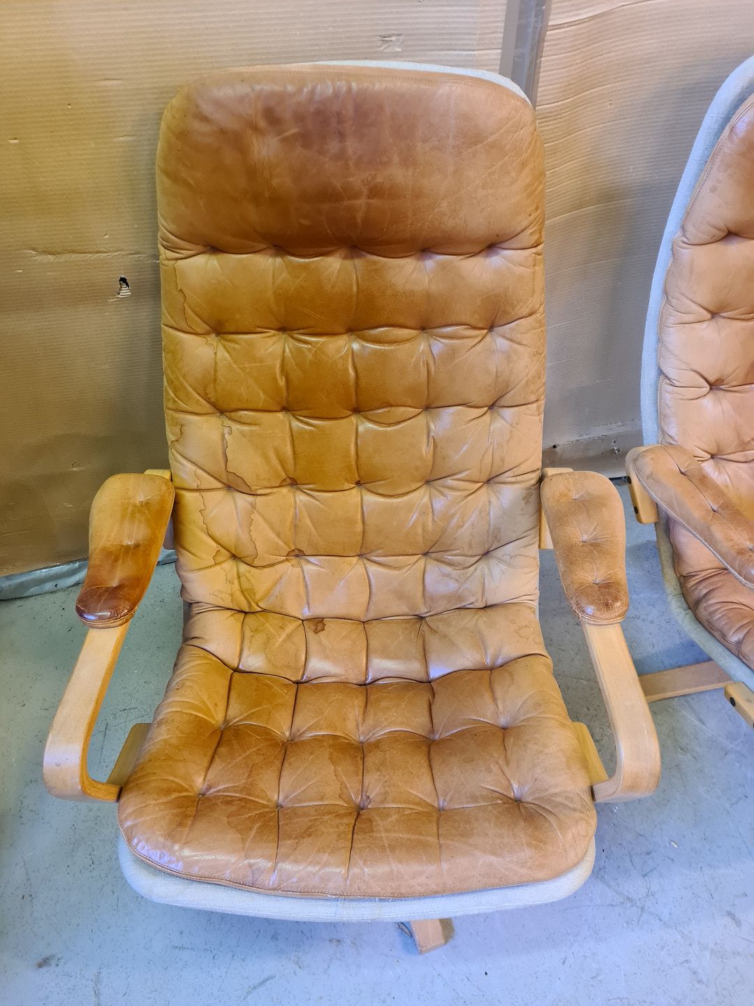 2 Lænestole i bøgetræ og læder, fra 1980erne.