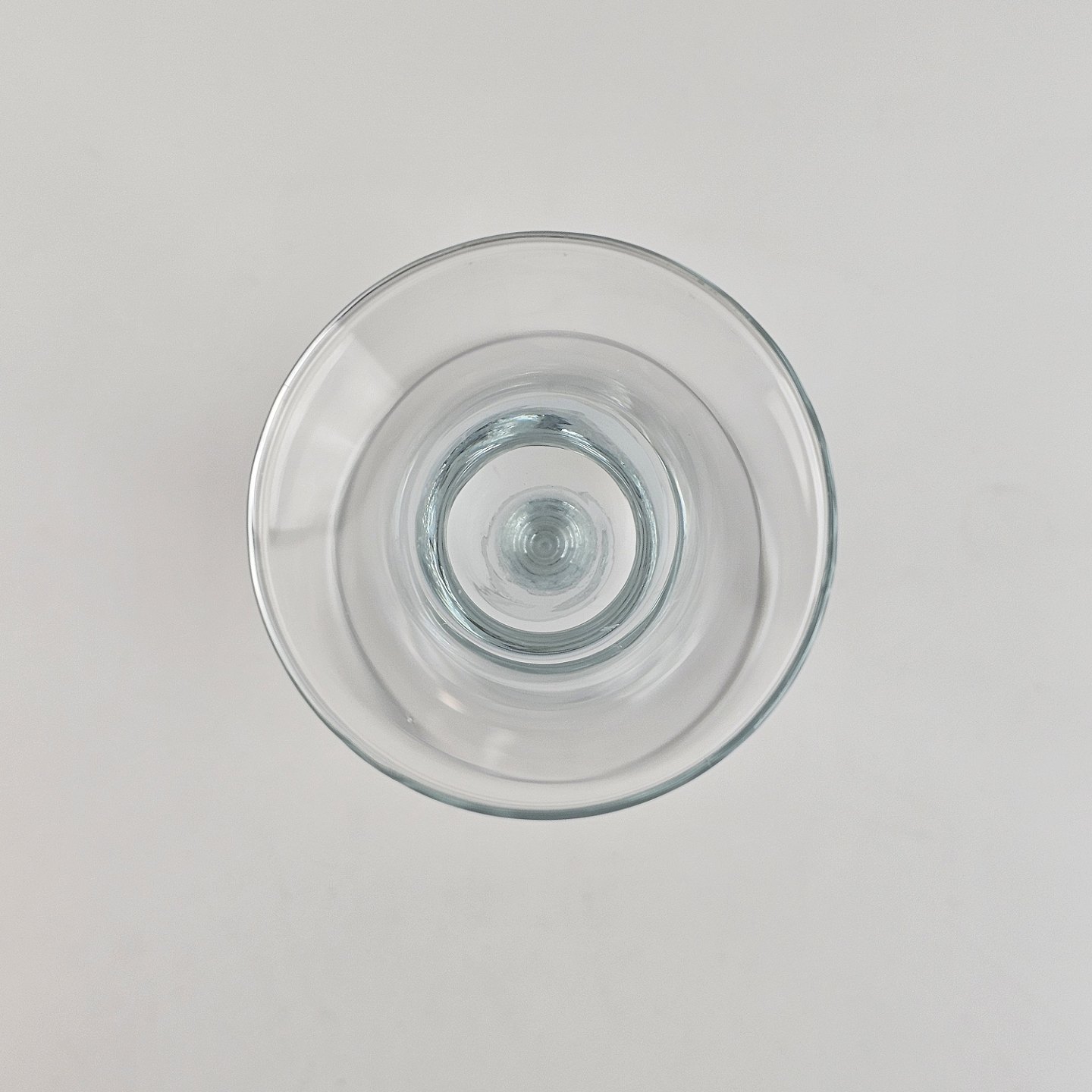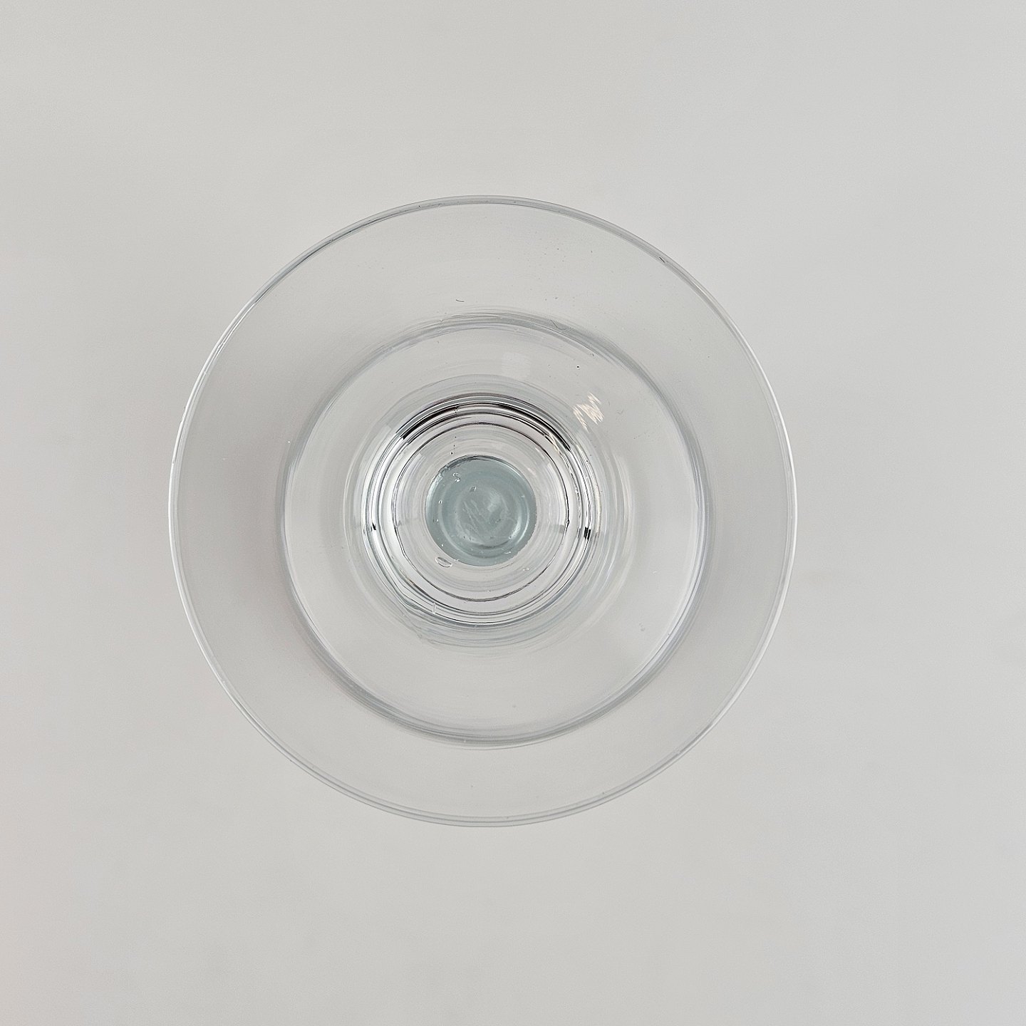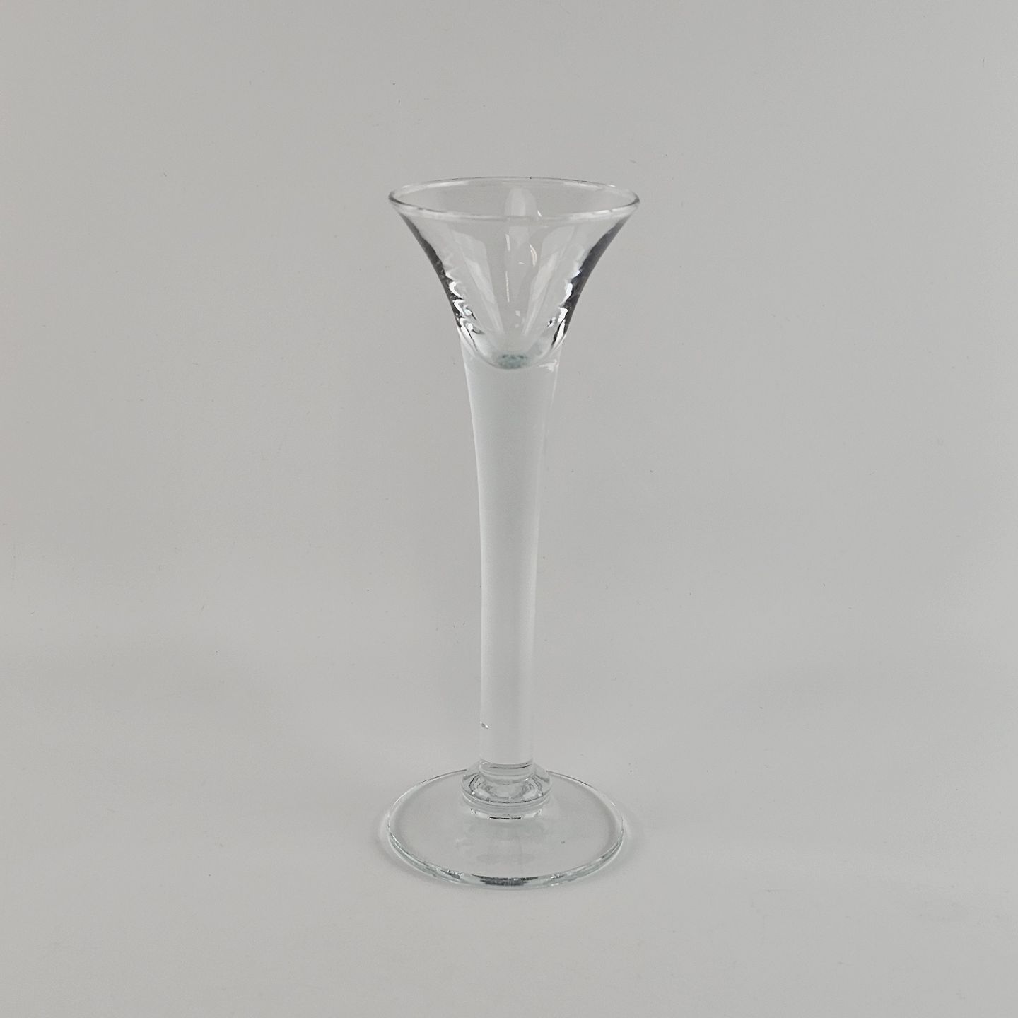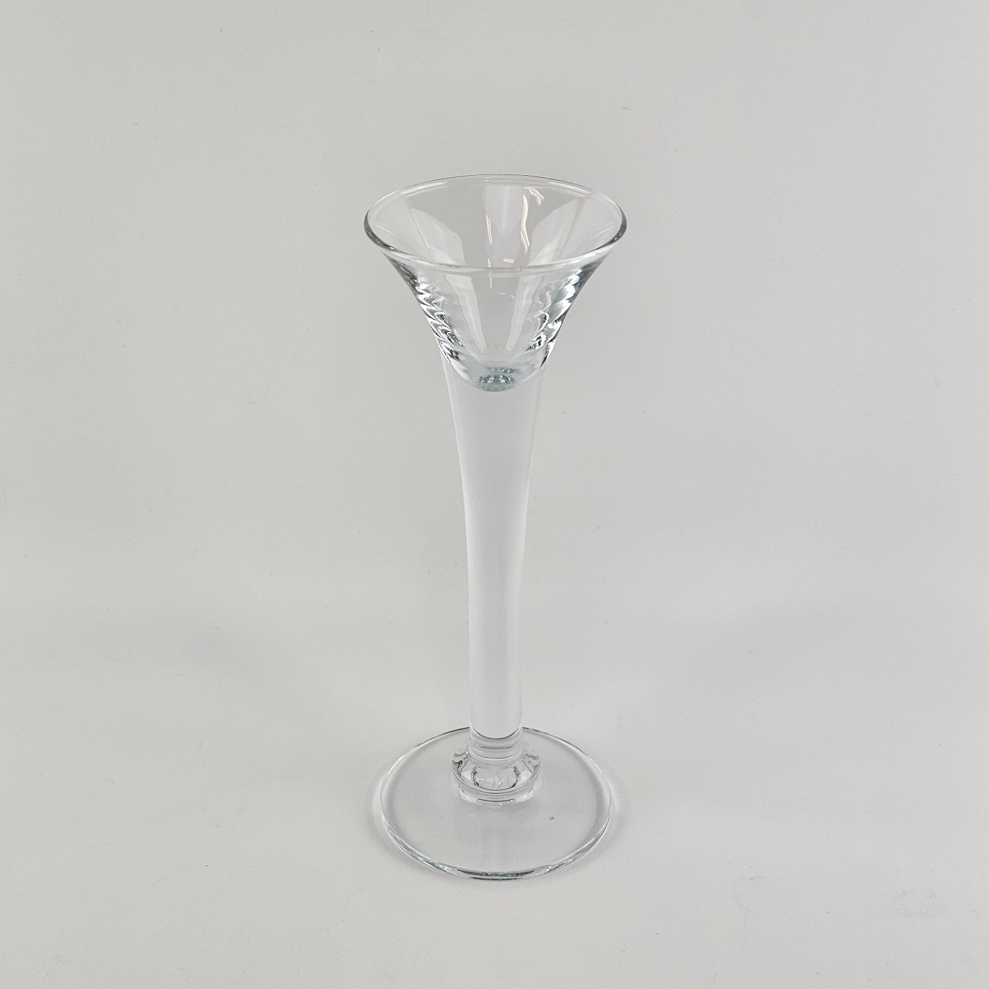 Højt snapseglas fra 1977 i klart glas fra serien Snapse doctor med titlen Fingerbøl.