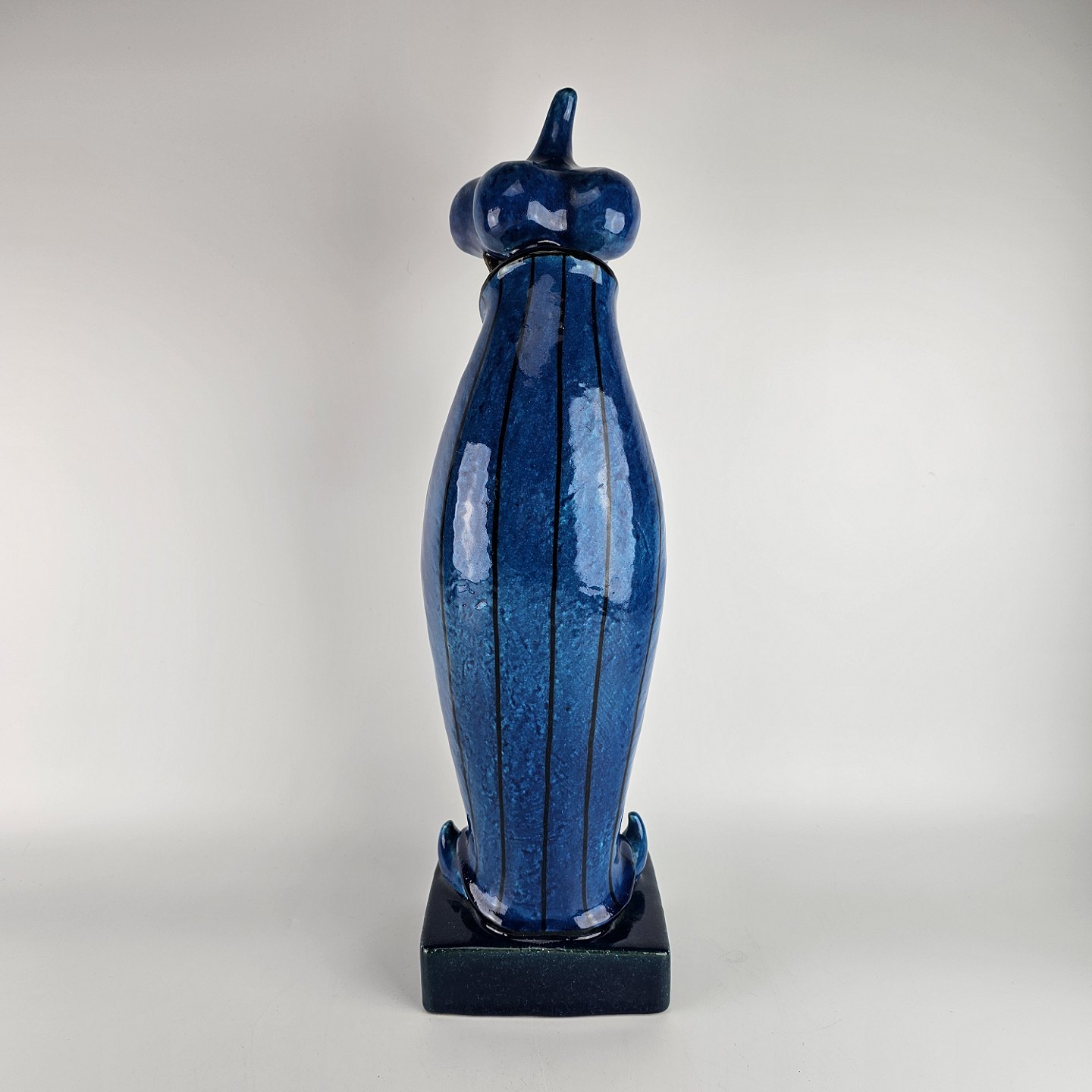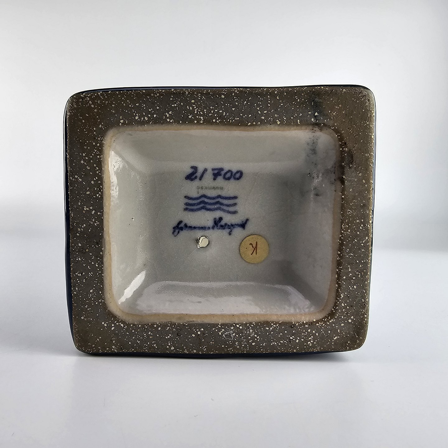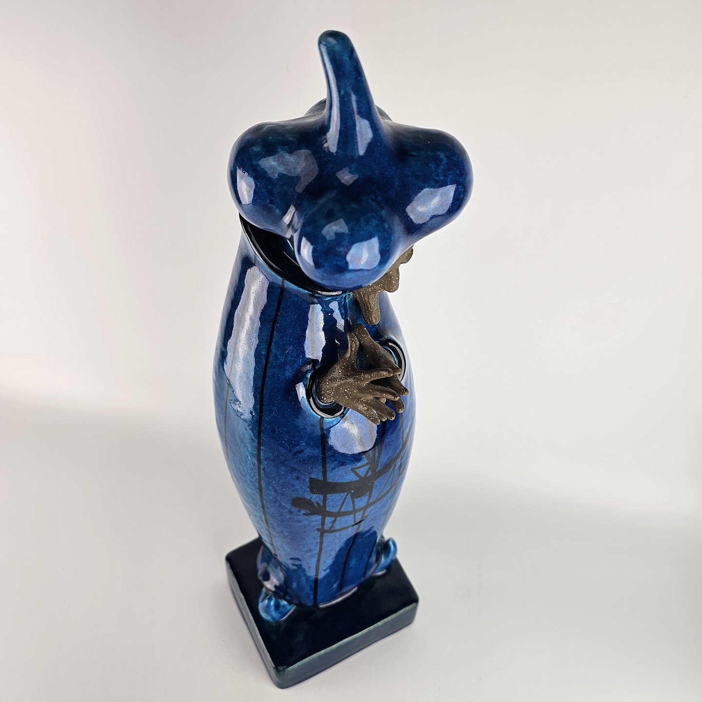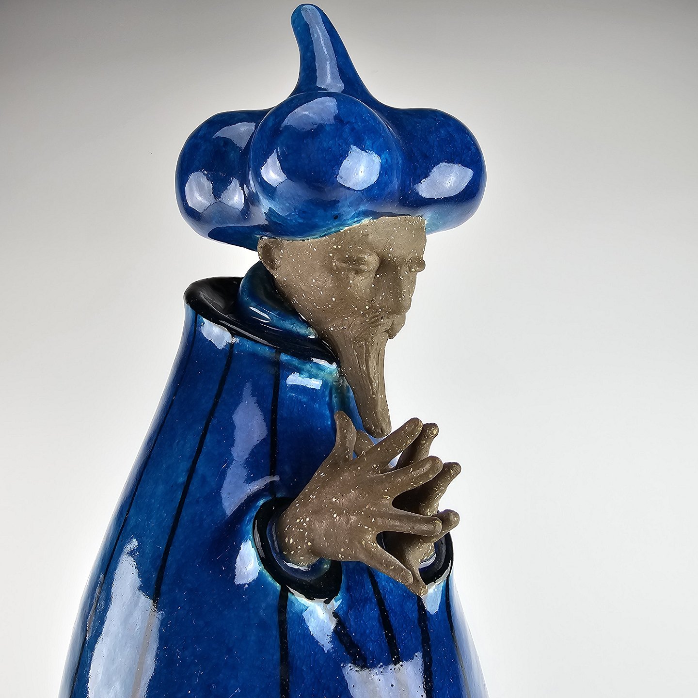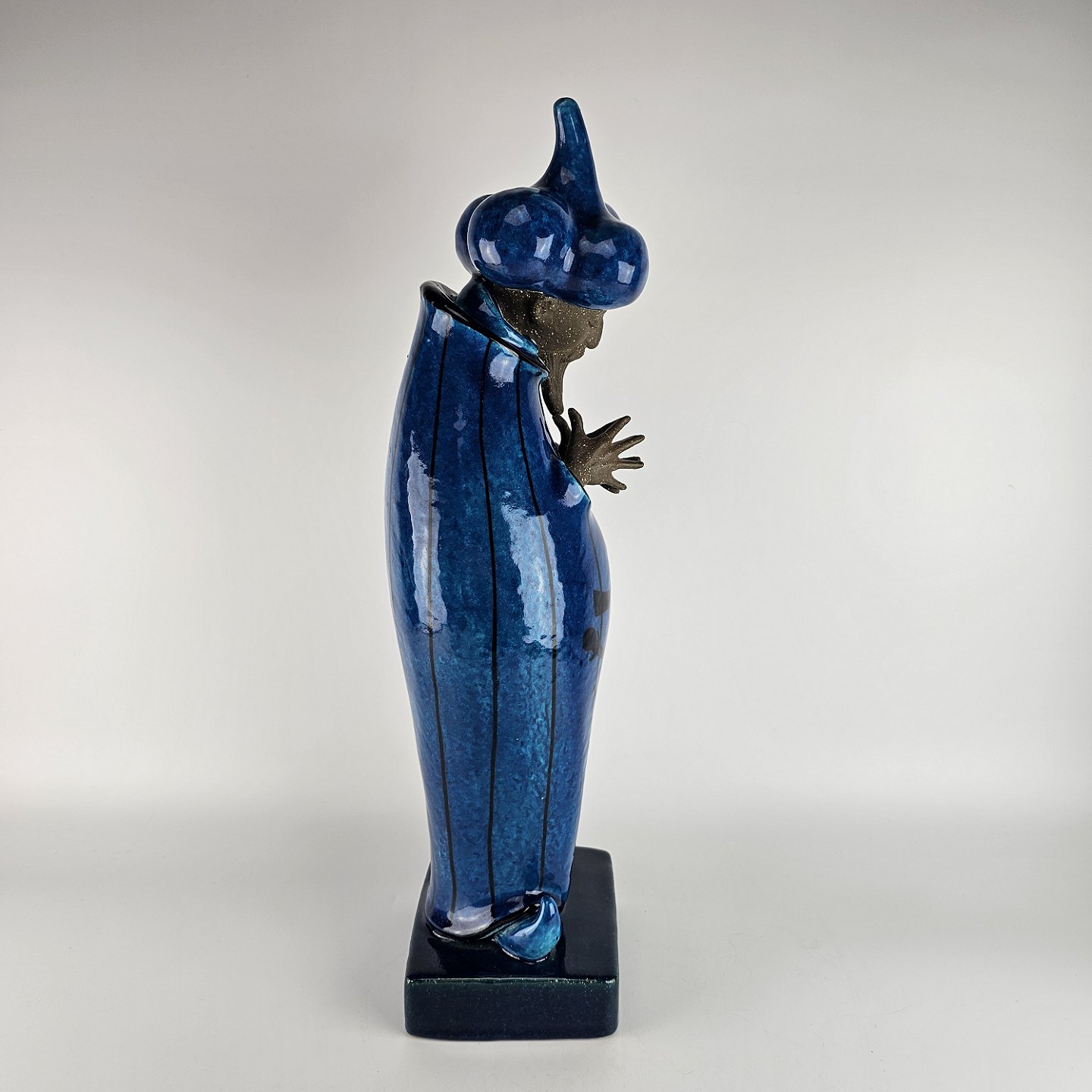 Figur i delvis glaseret stentøj med motiv af mand med østerlandsk beklædning i blå farve som er navngivet Storvesiren. Nr. 21700